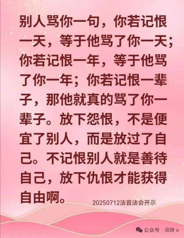 想想看,因为别人几句话,你就一直记在心里,你说你这个人修好了没有?只能说明你没有真正修心,你的心修好了,你眼睛看出去的人和事物都是美好的。