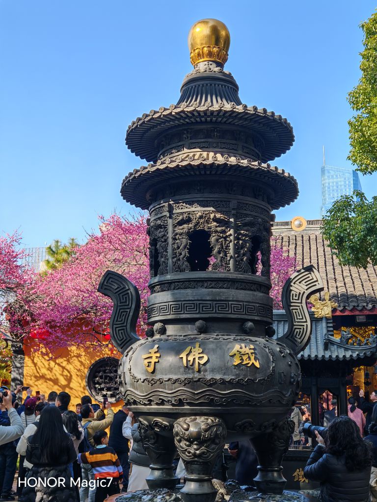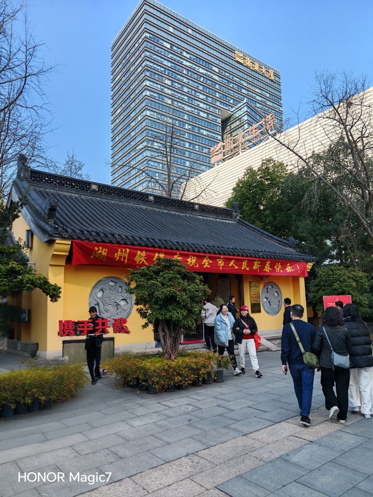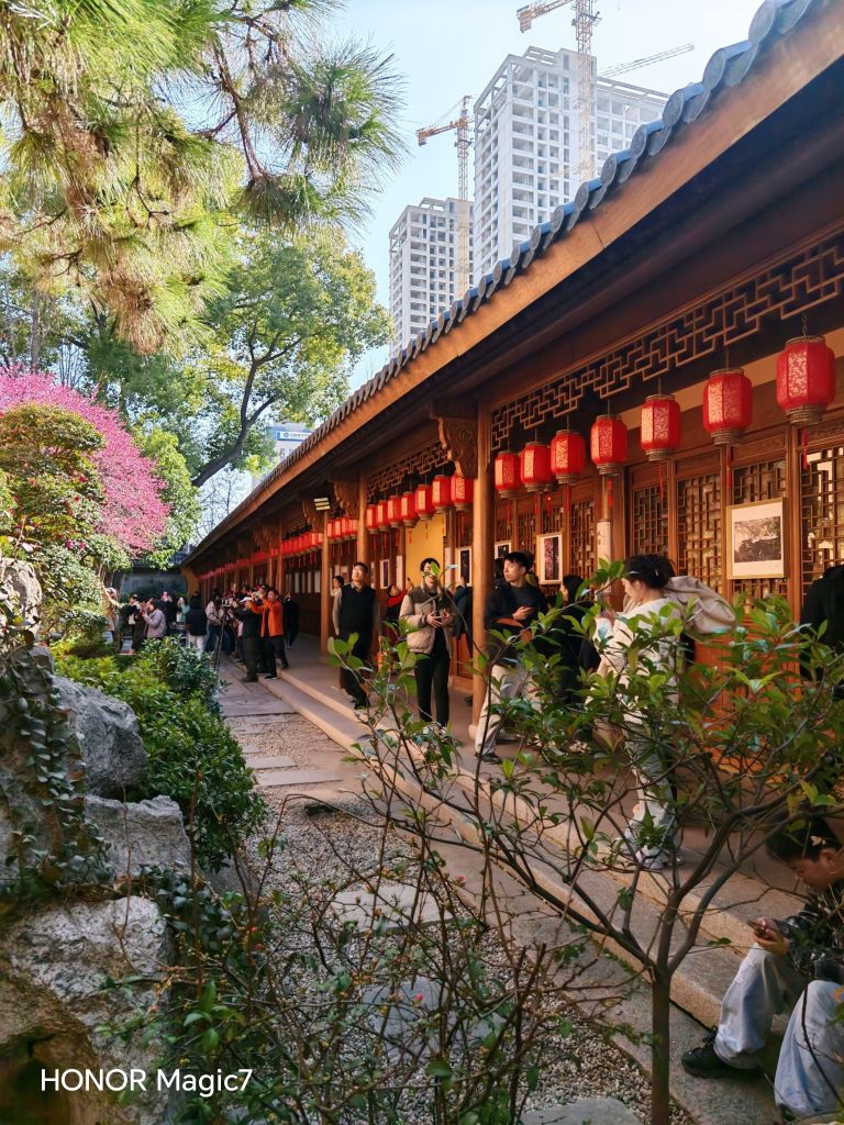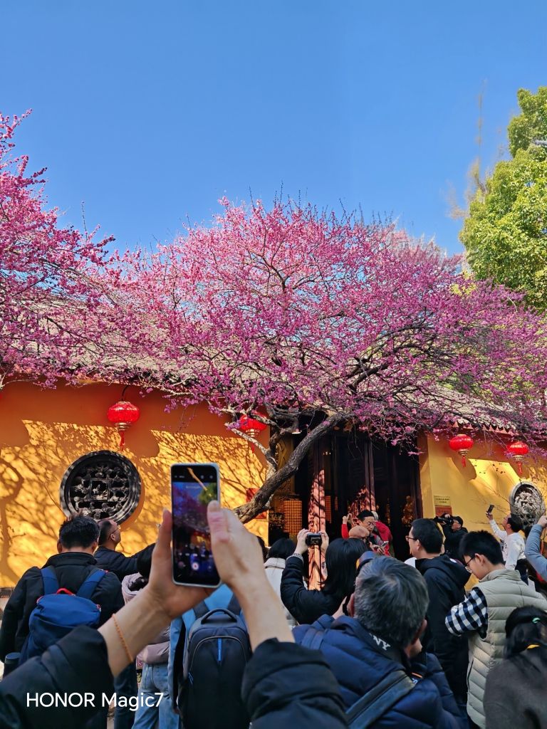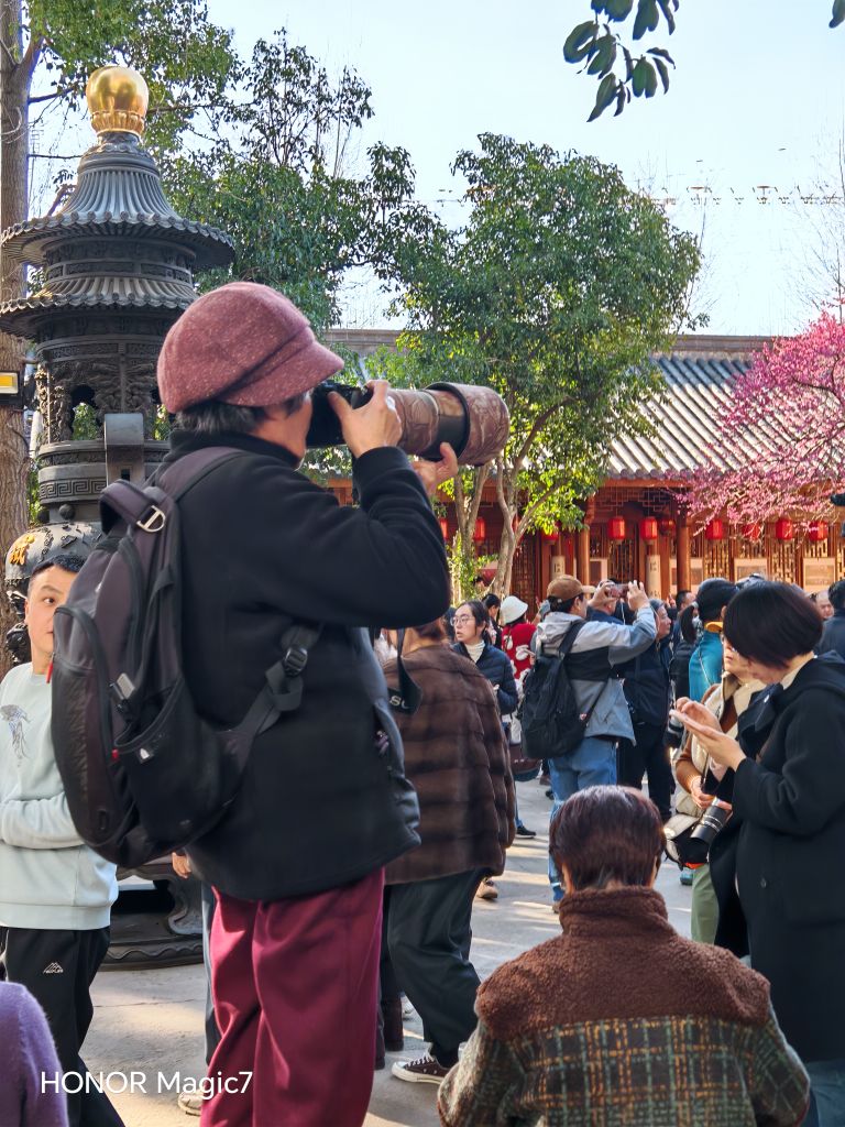 回来的路上正好顺路,这几天南太湖论坛上,大家都在说铁佛寺的红梅开得正艳,我便进去转了转。里面人特别多,人人都举着手机拍梅花,还有不少人架着****短炮专门拍照。我也挤在人群里,拍了几张照片,仔细看着那两株红梅,一下子就想起了《红梅赞》:“红梅花儿开,朵朵放光彩,昂首怒放花万朵,香飘云天外……”