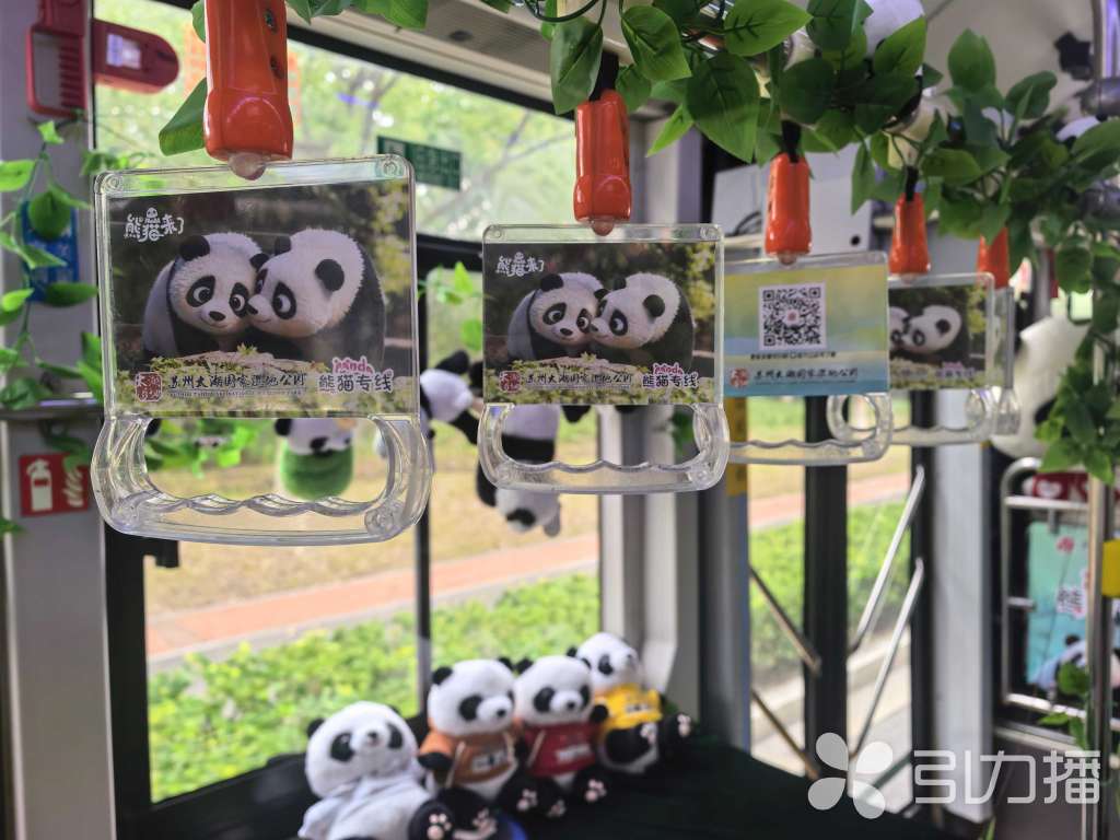 走进熊猫专线,仿佛踏入“熊猫主题乐园”。车身以清新的“苏式绿”为底色,憨态可掬的“梦寻”“奥宝”卡通形象与太湖湿地的芦苇、湖水实景巧妙融合,行驶在街头时,引得不少路人驻足拍照;车厢内部更藏着“小心思”,顶部、地板、座椅满是熊猫卡通图案,游客扫码就能获取湿地公园游玩攻略与大熊猫科普知识,在乘车途中轻松“长知识”。不仅如此,车厢内还设置了毛绒熊猫玩偶区与公交主题文创道具陈列角,成为天然的“打卡点”;身着熊猫服的工作人员全程提供乘车引导、路线咨询,还为小朋友准备了熊猫服饰供乘客打卡拍照,让乘车过程充满童趣。