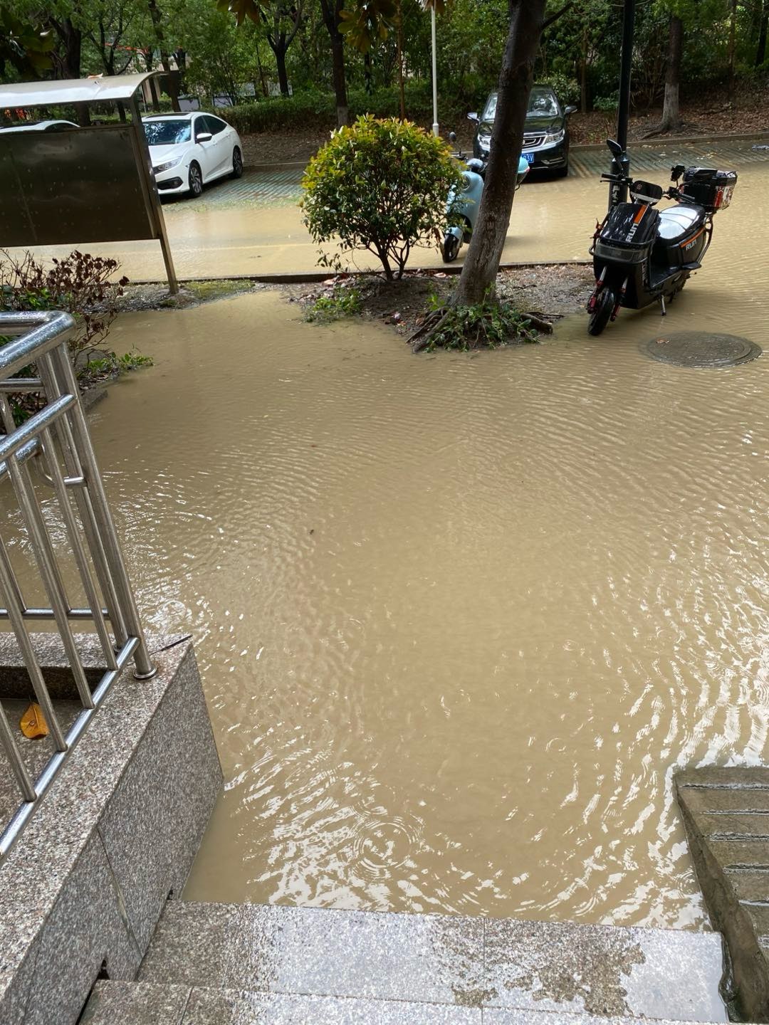 今早一场大雨直接把单元门口的路全部淹了,积水很厚,不穿雨鞋都无从下脚,希望有关部门能治理一下排水问题。谢谢