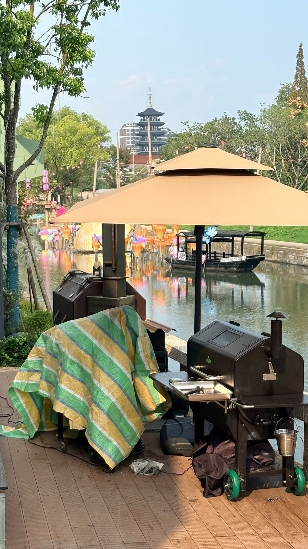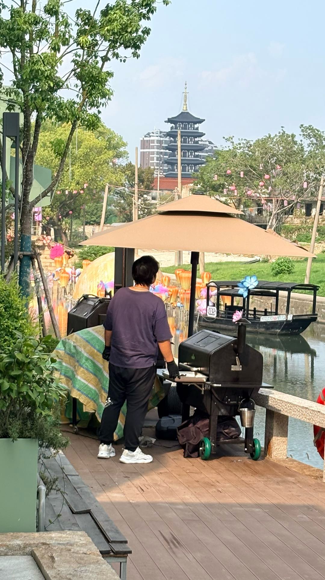这家店在外面沿河位置 放了三个烤炉,烟熏火燎的污染环境太严重了,而且肉是冷冻运到店里的,解冻后在炉子里在烤10几个小时,这能吃么? 三个炉子大大小小全部摆在外面 ,整条路上都是这个味道 闻的都想吐,一条街都被这个烟笼罩着 肉有没有入味不知道 反正人走过去入味了 浑身都是这个味道 难闻死了,好好的商业景区 怎么能这么搞呢