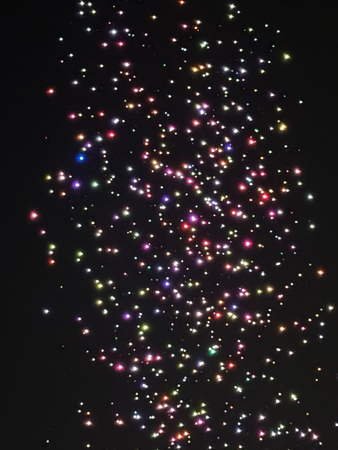 当无数星光在夜空列阵变幻出巨大的 “祖国万岁” 时全场都是自豪的欢呼