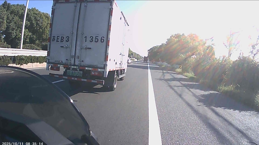 【事件】中型新能源厢式货车苏EB31356三壹叁伍六(车厢写有“梵匠73”红色字样)涉嫌多次主观恶意挤同车道超车、别车;超车时未变道(超车道很空),主观恶意紧贴我方机动车边上擦身而过、别车,造成极大的交通安全隐患。且该货车驾驶员涉嫌在驾驶车辆时吸烟、单手开车、未按要求打转向灯等行为。涉嫌违法危险驾驶、扰乱公共交通安全秩序、寻衅滋事,行为极其恶劣。
