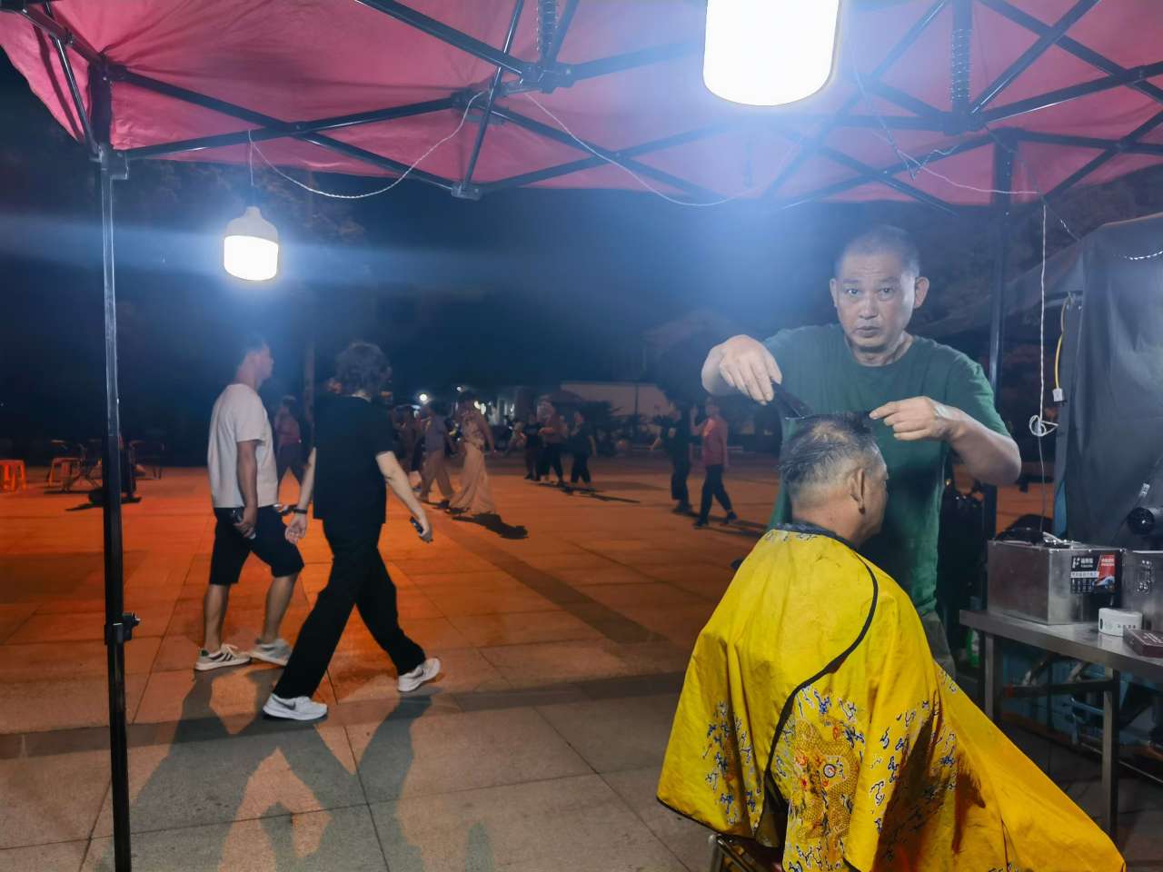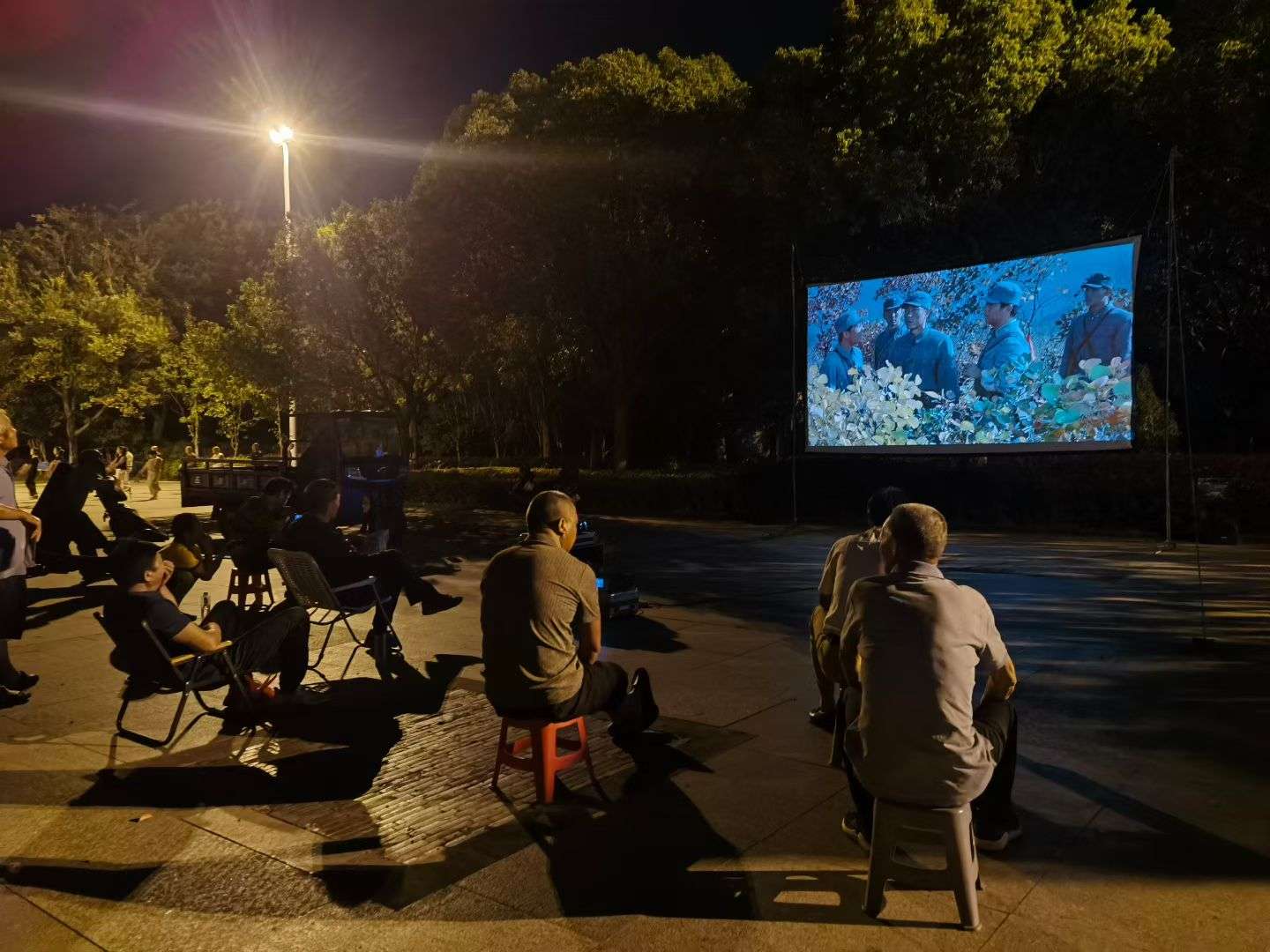 暮色文昌阁:一广场藏尽烟火暖 晚风轻拂文昌阁飞檐,暮色中的广场化作生动的生活剧场。阿姨们的广场舞步踏着霞光起落,理发摊的推子嗡嗡哼着家长里短,幕布张起,抗战片的枪炮声又将记忆牵向岁月深处。从发丝间的微温到光影里的厚重,这方小小天地,盛着最鲜活热络的傍晚时光。(震泽~秋波摄)
