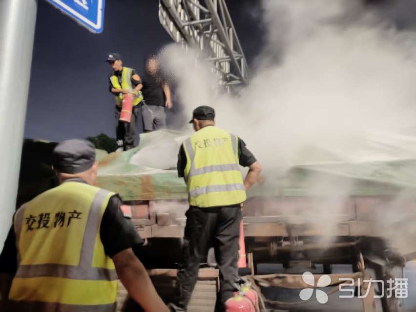 当晚18时20分许,这辆从宁波驶往江阴、满载30吨铁粉的大货车正停靠在广场。不料,车厢内铁粉突然发生自燃,覆盖的油布迅速冒烟并蹿出火苗,现场情况一度危急。太湖服务区安保人员李纯喜在巡逻中第一时间发现了险情。他一边高声呼喊提醒驾驶员黄师傅,一边通过对讲机紧急呼叫支援。值班主任接到报告后,立即带领应急队员携带灭火器赶赴现场。