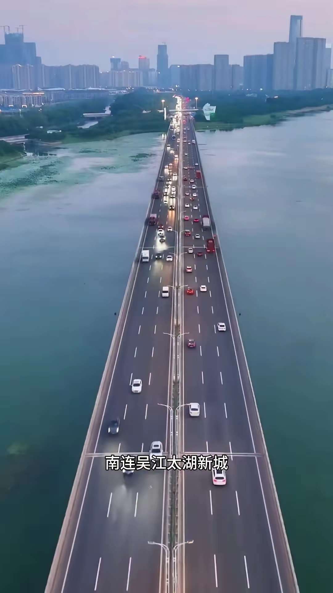 苏州湾大桥,原吴江东太湖大桥,2011年10月通车,是230省道关键枢纽,北接苏州,南连吴江太湖新城。全长2.602公里,双向六车道设计,投资2.3亿元的它不仅是交通动脉,更以长虹卧波之姿成为景观地标。