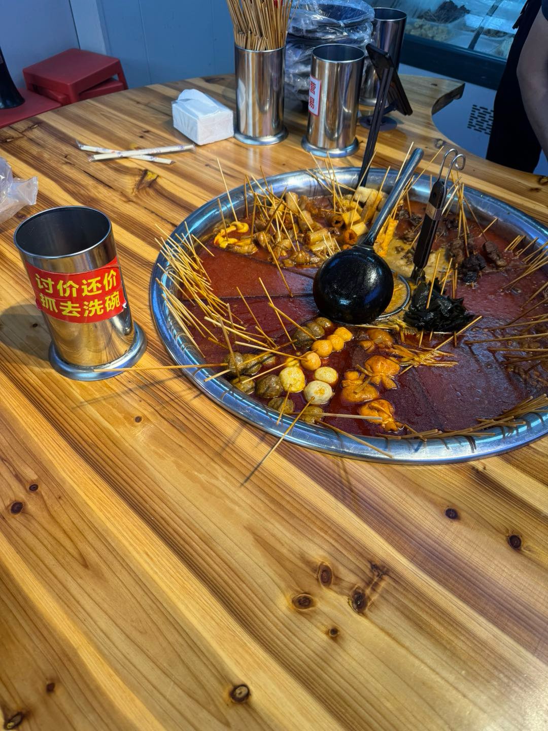 老板在麻辣锅里涮好了放你碗里,辣是真的挺辣的,但是挺好吃