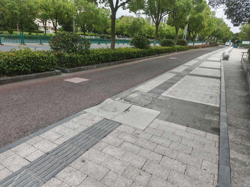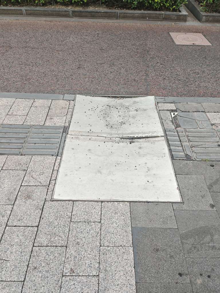 庞东路路灯190旁边的电力井盖中间有点下陷了
