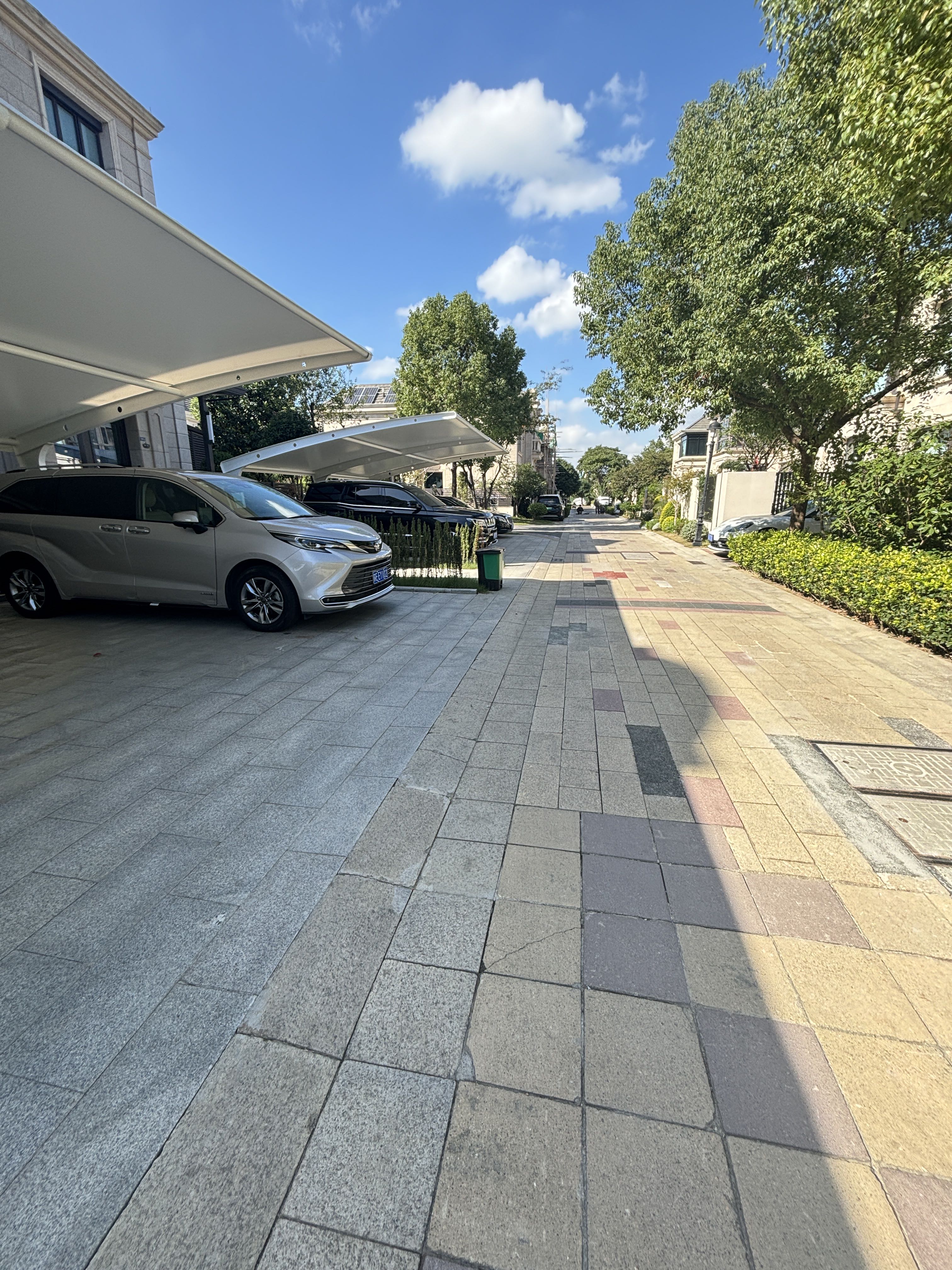 本来很敞亮的一条路,现在被私自搭建的 [棚子/构筑物] 占去了一部分。这条路原本是大家日常通行、散步的主要通道,视野开阔,走在路上心情都很舒畅。