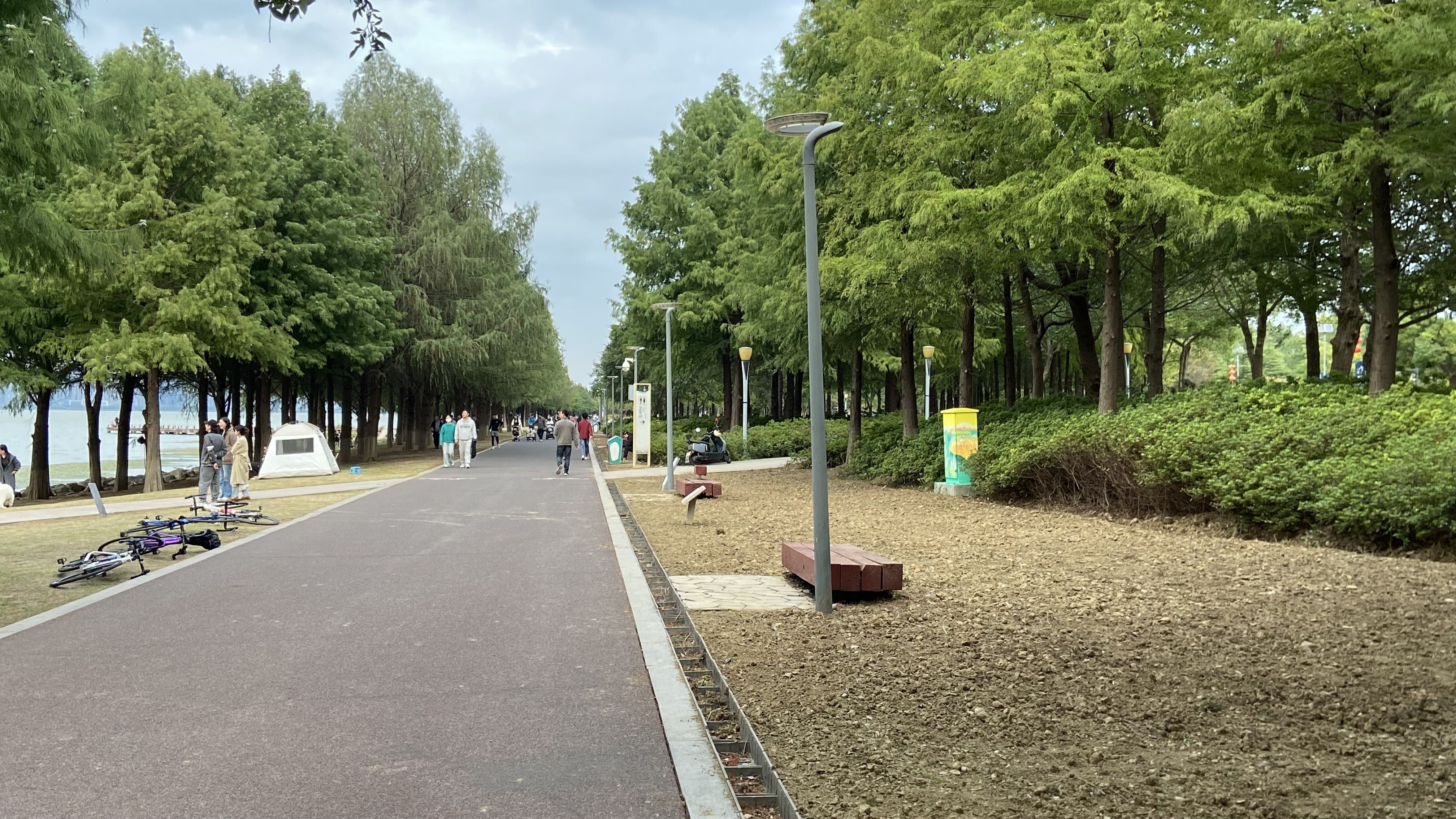 今天到苏州湾突然发现乔木修剪了,地上的灌木也在重新梳理,效果也是越来越好。露营的人络绎不绝,很高兴,指的大大的点赞