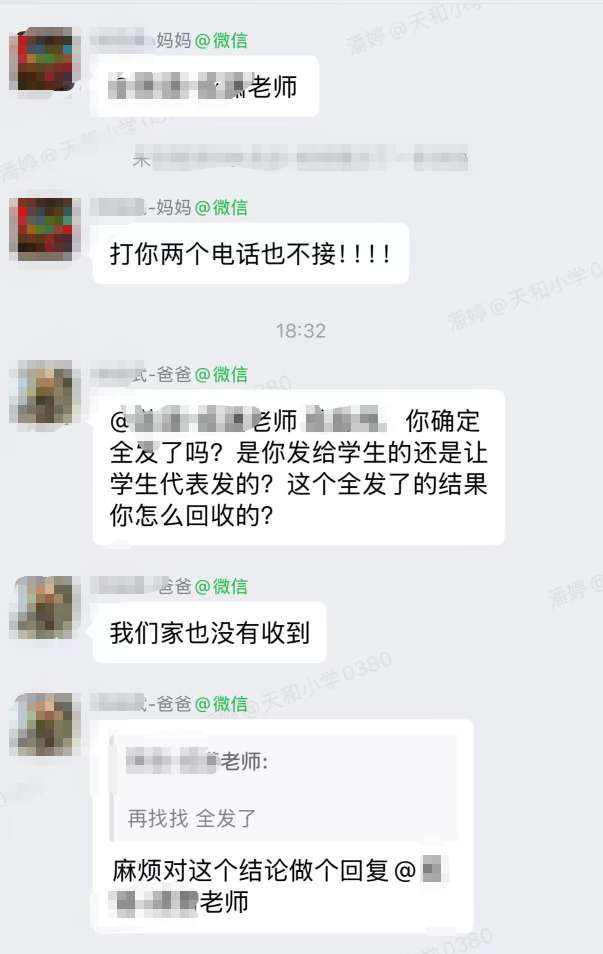 群里面吵吵闹闹,有一个孩子学校做的英语练习卷没拿到,家长夫妻两个连续在群里质疑老师有没有亲手把试卷发到孩子手中?