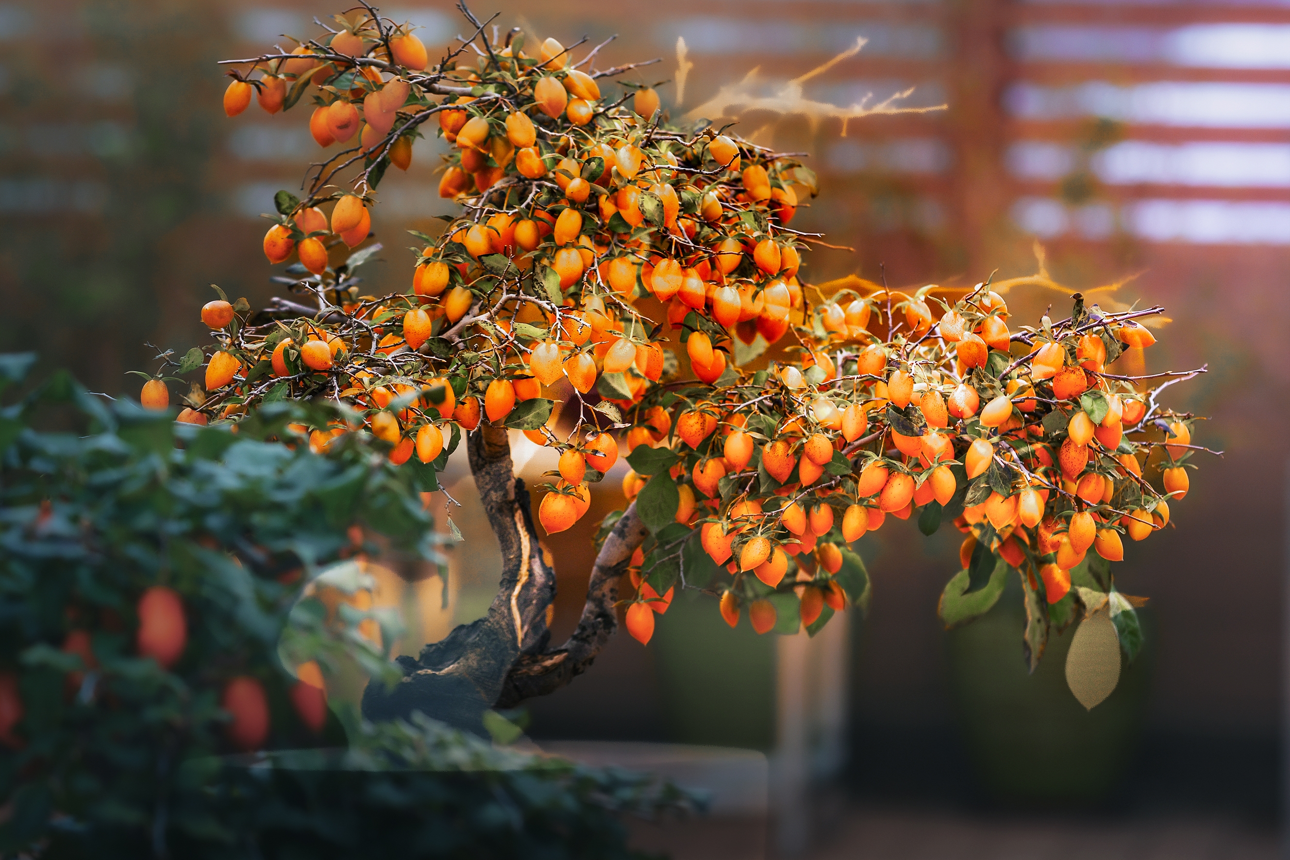 ·老鸦柿是盆景界适应性强,耐修剪,易于造型;枝干苍劲,富有骨感;果实玲珑可爱,色彩鲜艳,挂果期长,是观果盆景的极品。文化寓意:其果实累累的形象,常被赋予“多子多福”、“硕果累累”、“事事(柿柿)如意”等吉祥寓意。