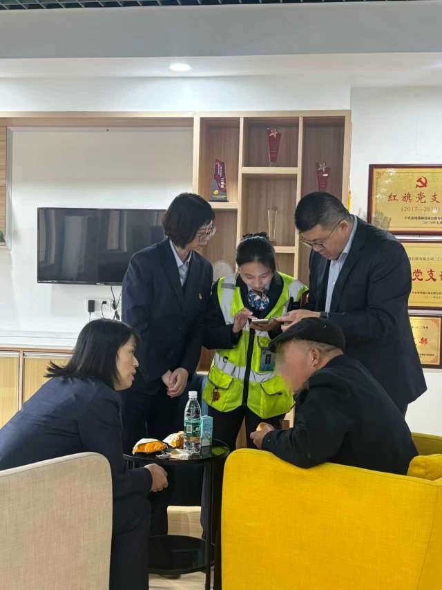 待老人情绪逐渐平复后,工作人员与老人进行反复沟通,最终通过其随身携带的手机,成功联系上老人的儿子。电话中,工作人员向焦急的家属说明情况,并发送定位,承诺会一直陪伴老人直至家属抵达。