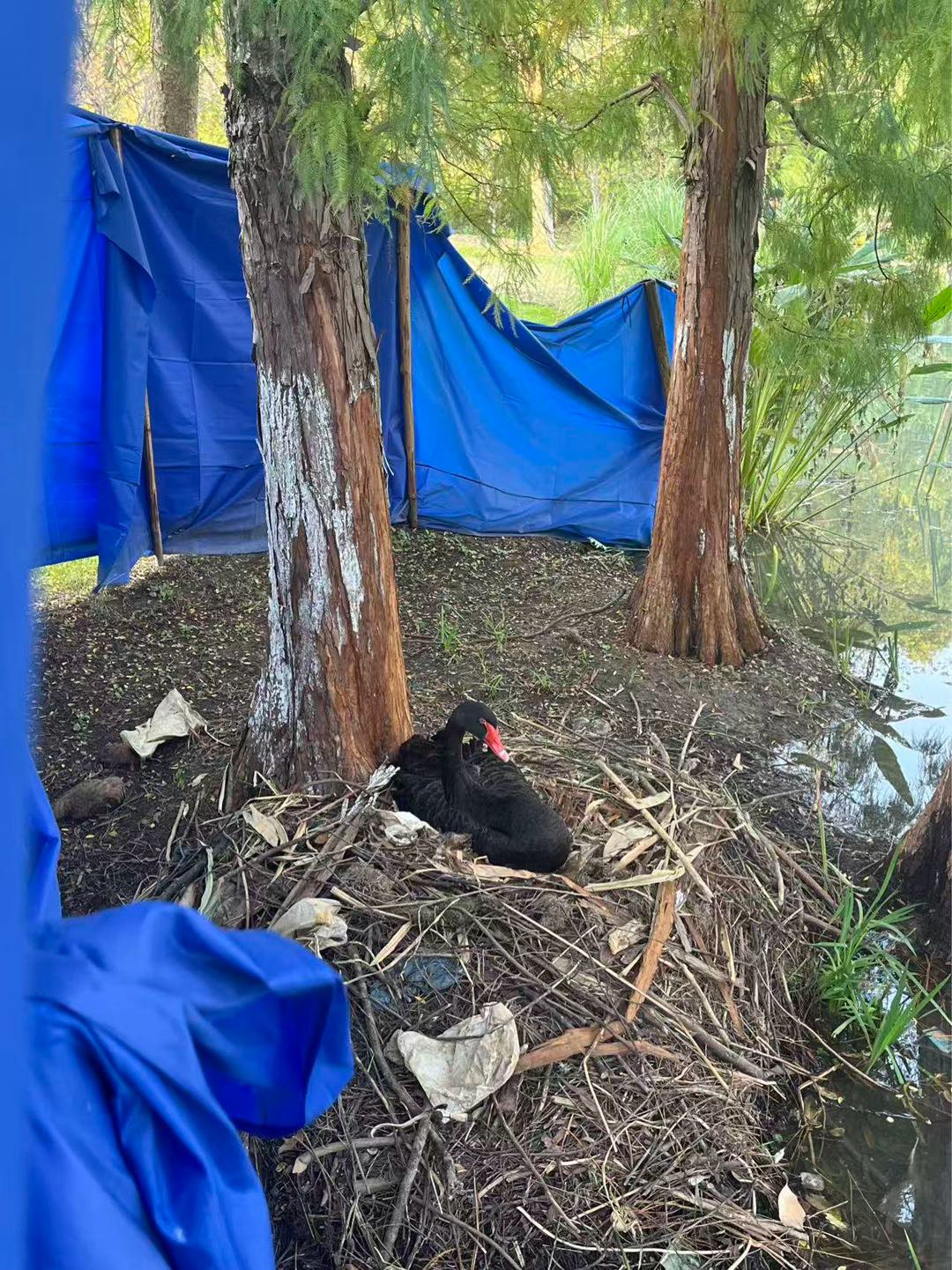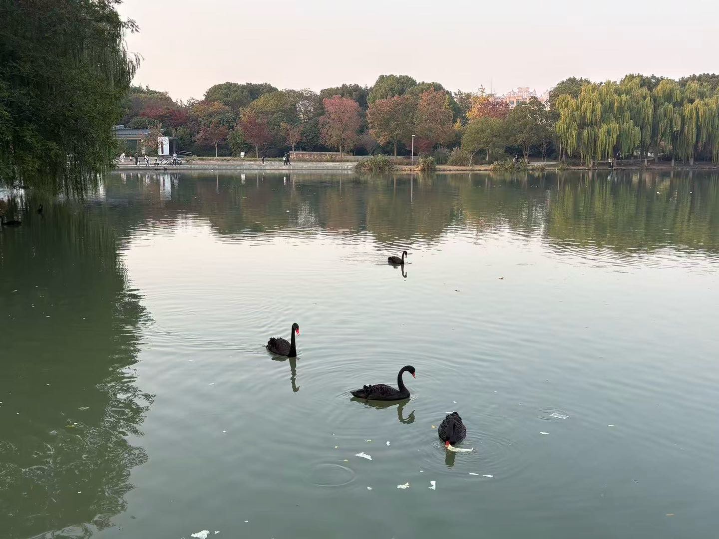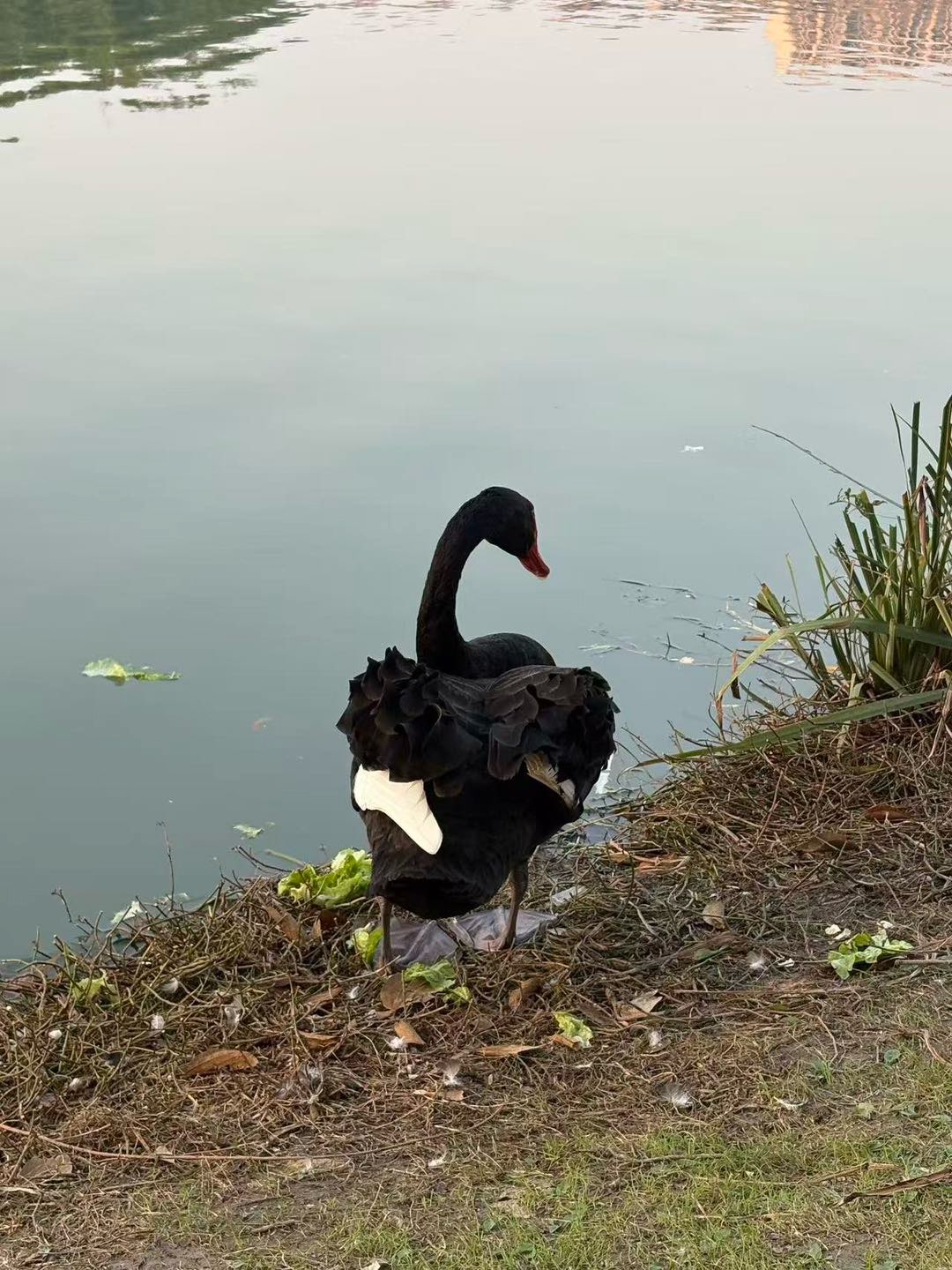 湖里都是大家扔的白菜叶子天鹅们都吃饱了