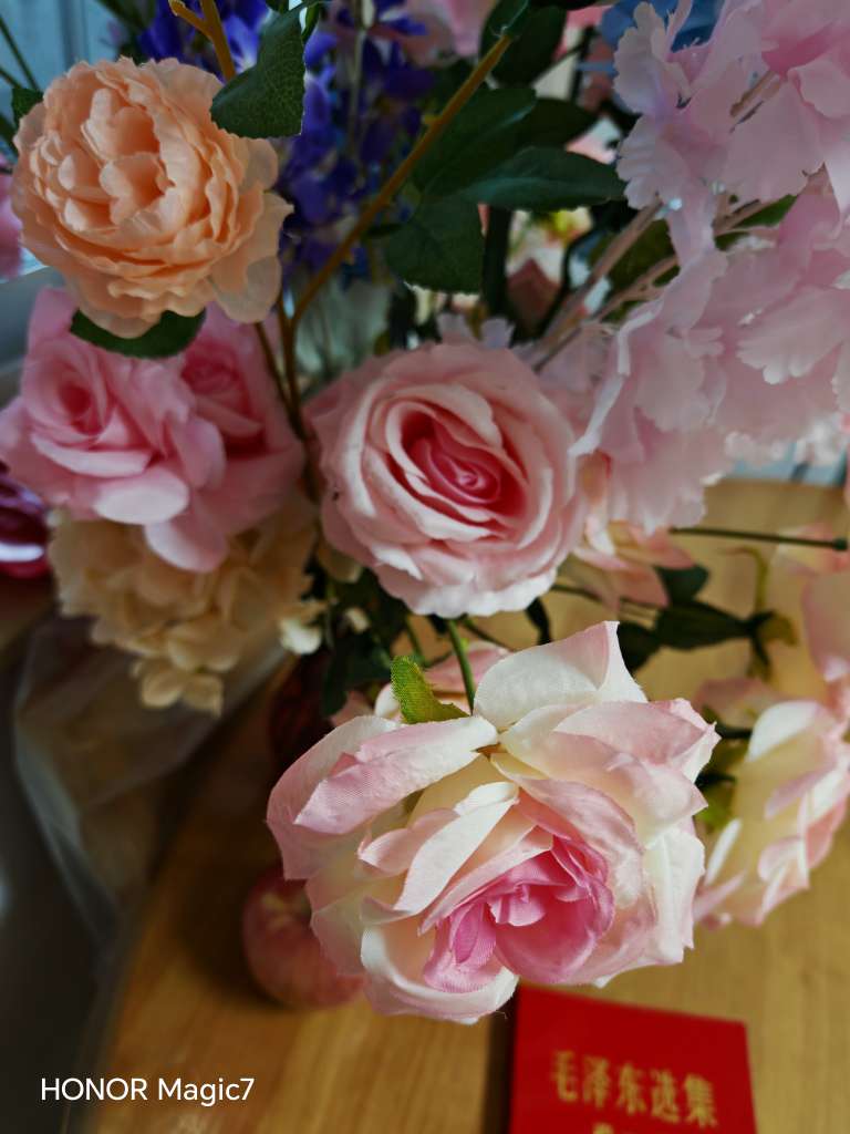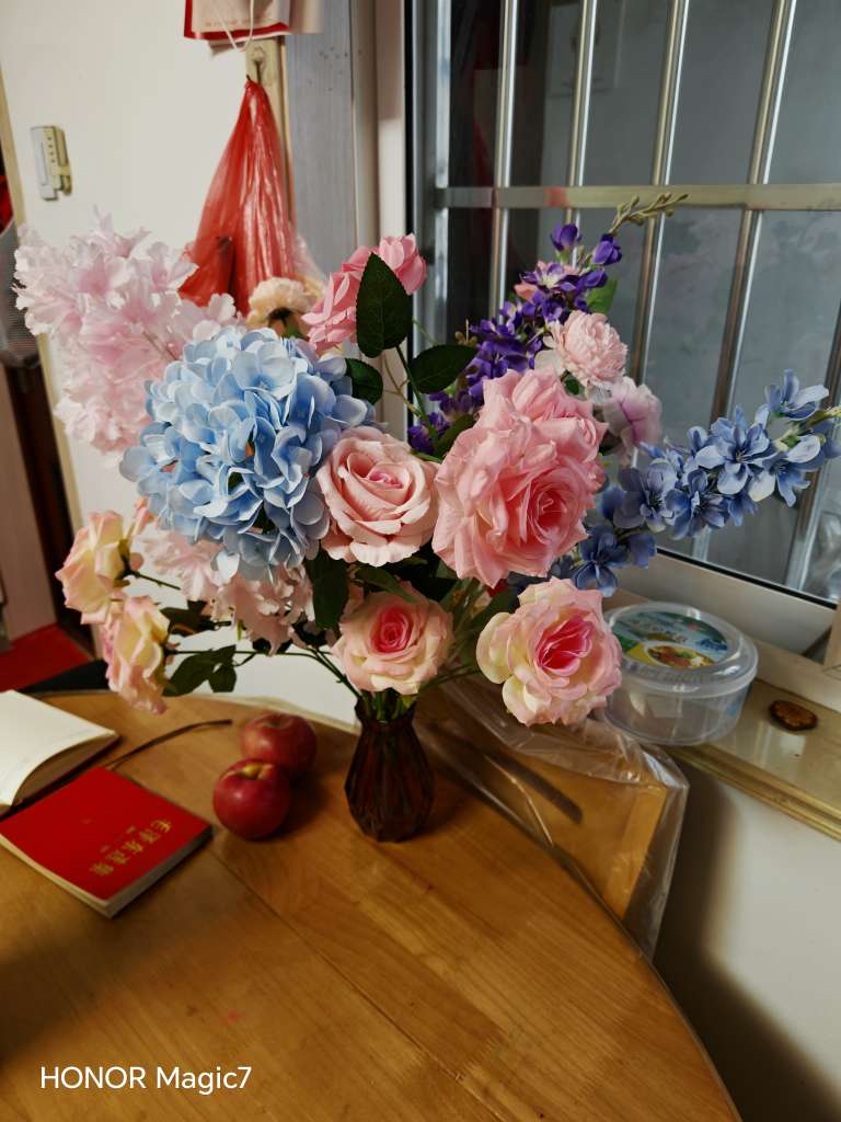 到家时天刚亮透,找了只花瓶把那些艳丽的装饰花插进玻璃瓶,摆在饭桌上倒也显眼。想来这“永不凋零”的假花,倒比真菊更省心些,只是不知明年此时,还能不能从菊展带回些能熬过四季的真颜色。