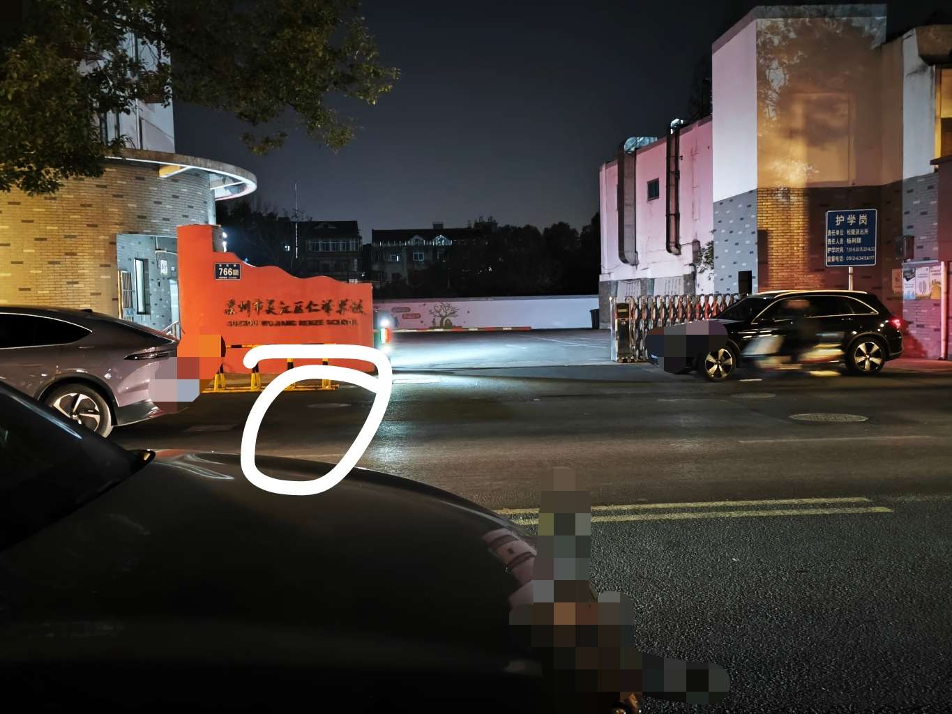 此处车辆较多,且汽车,电动车,行人均有路权。建议学校加强安保队伍管理。