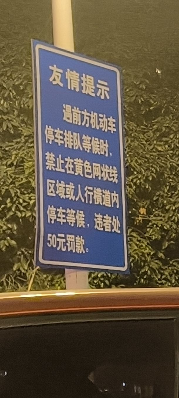 下午下班时段,5点到6点,东西方向和南向北方向这个交汇T字路口可以说是群英荟萃。这个交通警示牌形同虚设,真有人因为排队压线被罚钱吗?这牌子不如摄像头拍照实用。东向西方向遇到堵车排队,十个里只有一个遵守交规不压黄线区域的,自己走不了,也不让转弯的人走,非要停在黄线上等。然后转弯的车堵住了,西向东直行的车也堵住,最绝的是中国工商银行出来的,图省事,西塘河这个北向南的单行道上逆行,加入T字路口堵车大家庭,大家一起堵那…普通市民不遵守交规是素质问题,更绝的是城投运钞车也这样逆行开