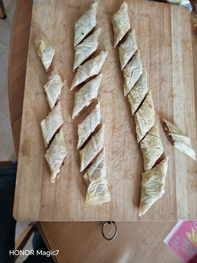 正卷着酥肠,老伴逛完街回来。她看着我手里的"作品"直乐:"老温沙,你这酥肠比牙签还细!"我看着她打趣:"中国酥肠走精致路线,非洲酥肠要粗两倍呢”!说着拿起在“拼多多”上买来的快刀。手起刀落,"砰"地斩断肠段,肉馅纹丝不溢。老伴吓得直拍胸口:"你这拼多多买的快刀,是要砍人啊?",我说你不懂了吧,刀不利索肉馅要挤出来的。