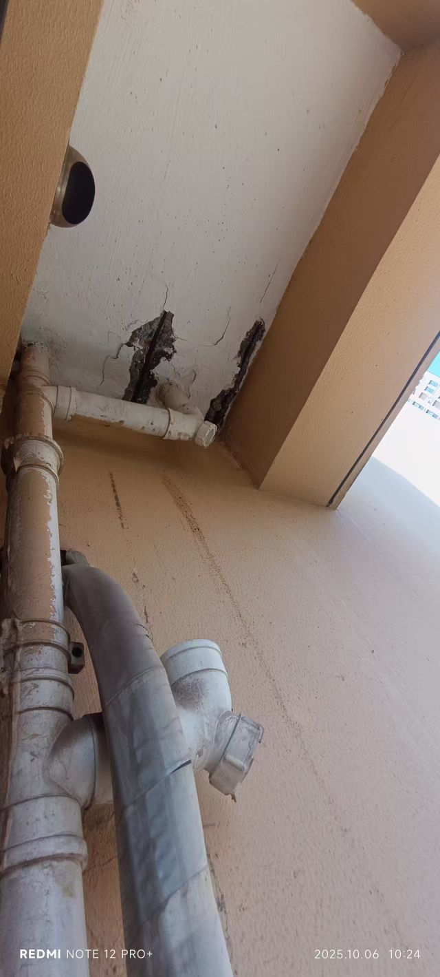 吴江区苏河鼎城北区,东边小阳台严重漏水导致钢筋外露铁锈胀大,长年反应,物业不作为,住建局不作为,如不修缮会导致整幢高层楼房处于危房,后果严重!!!