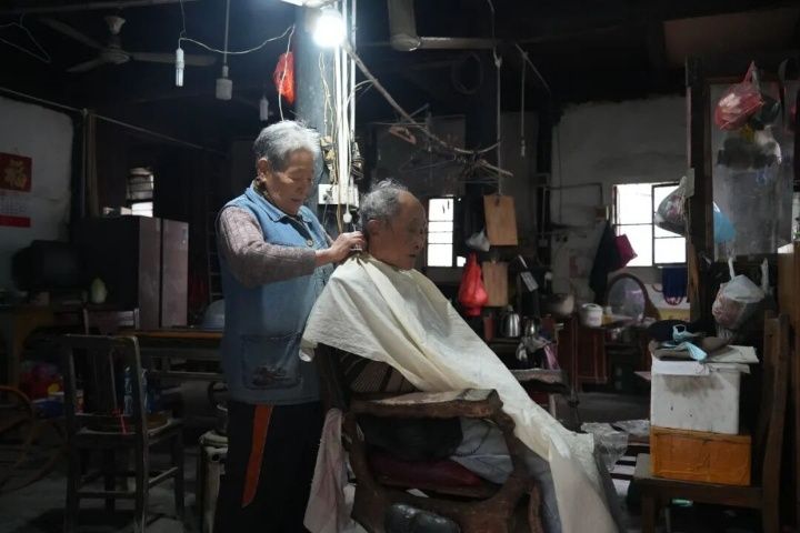 姜秀珍的理发铺,便在这样的民俗底色里,成了震泽人记忆里的“老地标”:孩童在这里剃去胎发,青年在这里修整仪容奔赴远方,老人在这里剪去白发闲话家常。一把剪刀,剪过岁月,也剪着人情,而八旬的姜秀珍,依旧守着银行弄的晨光与暮色,做着震泽人身边最亲切的“托尼老师”。