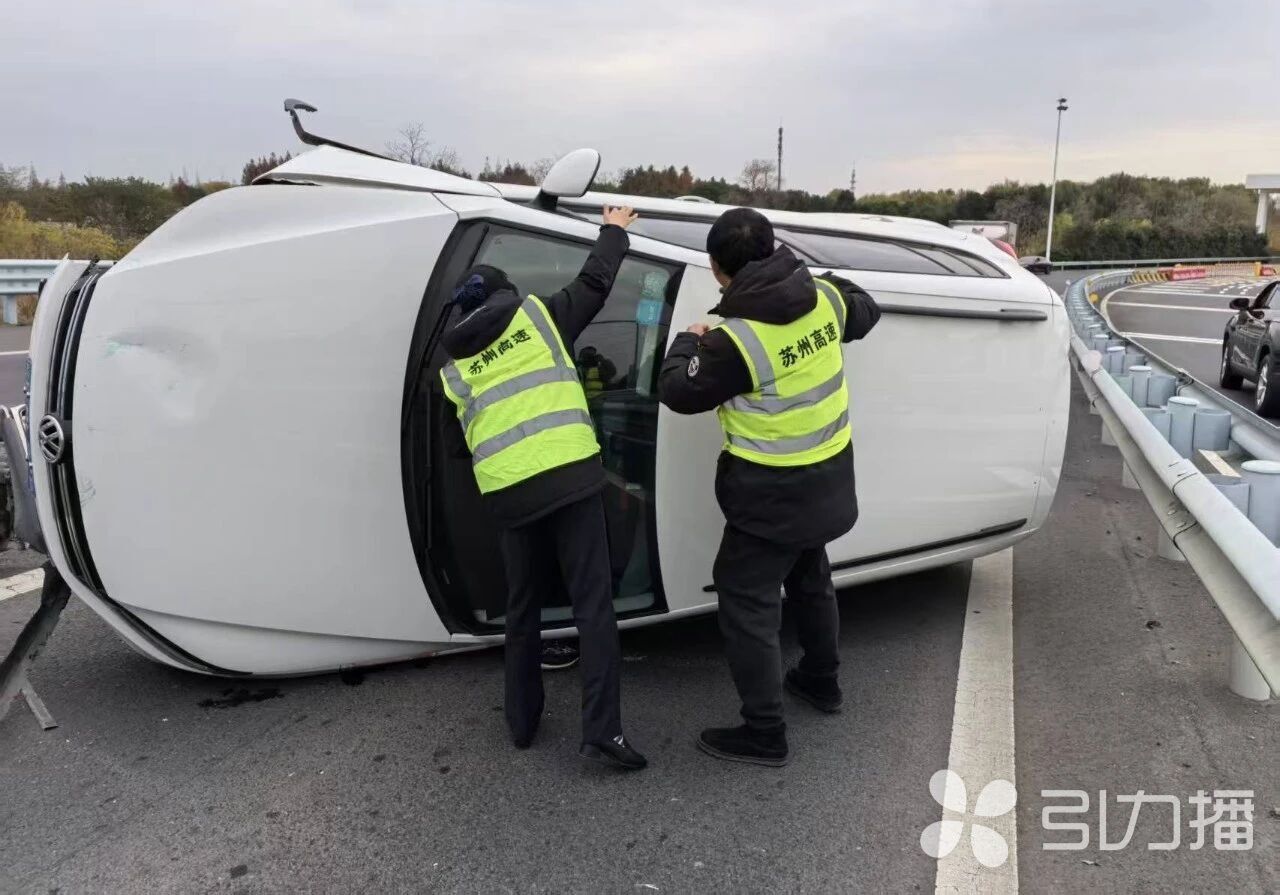 分心驾驶撞上分流护栏 苏州高速暖心救援