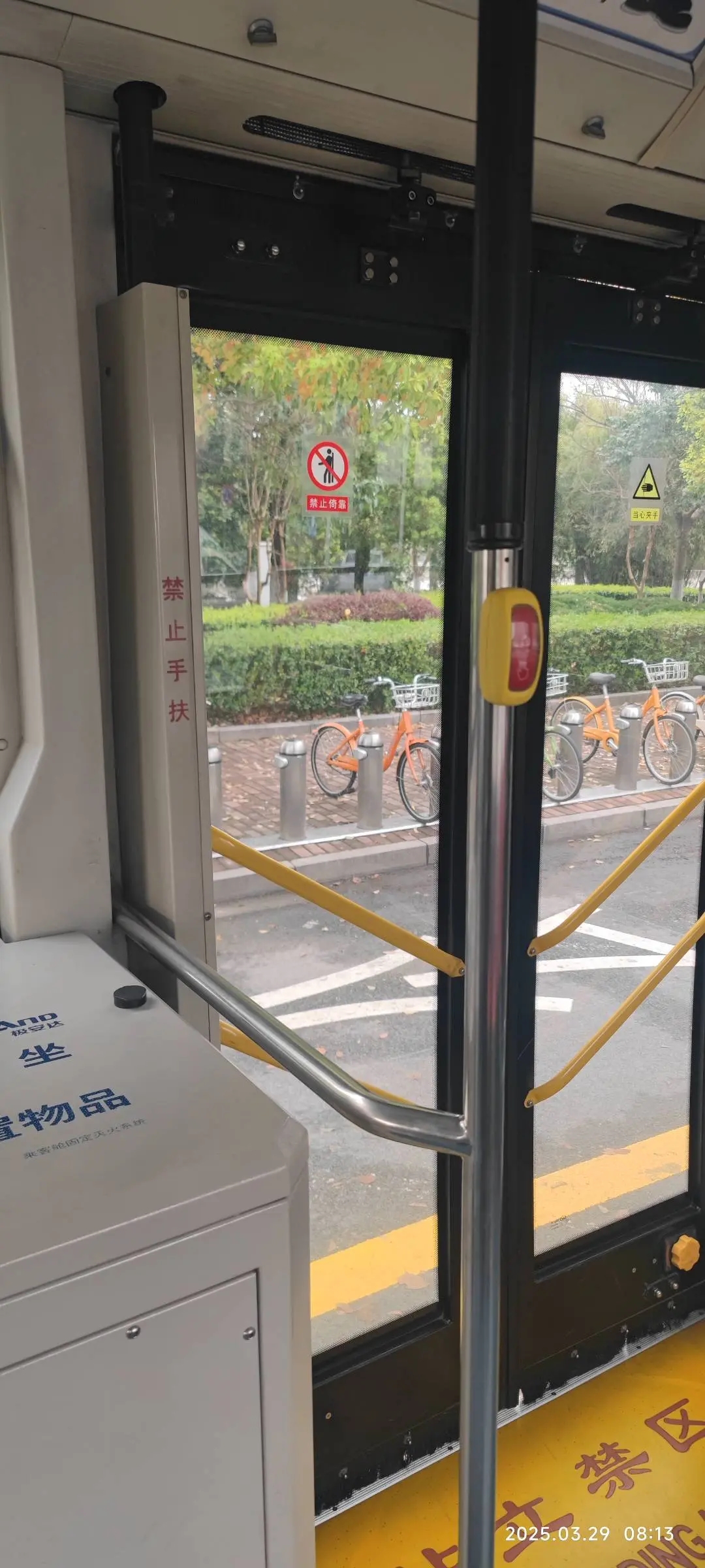 原来是这个乘客睡着了,公交车上的到站报站器提醒,估计他也没有听到。