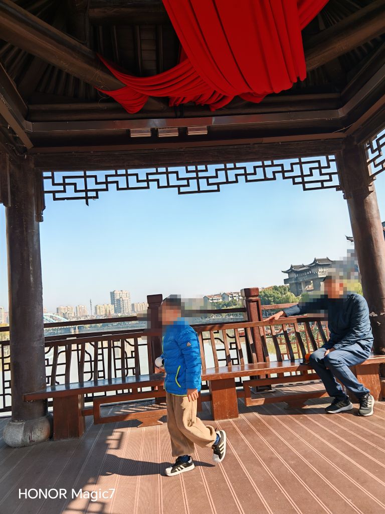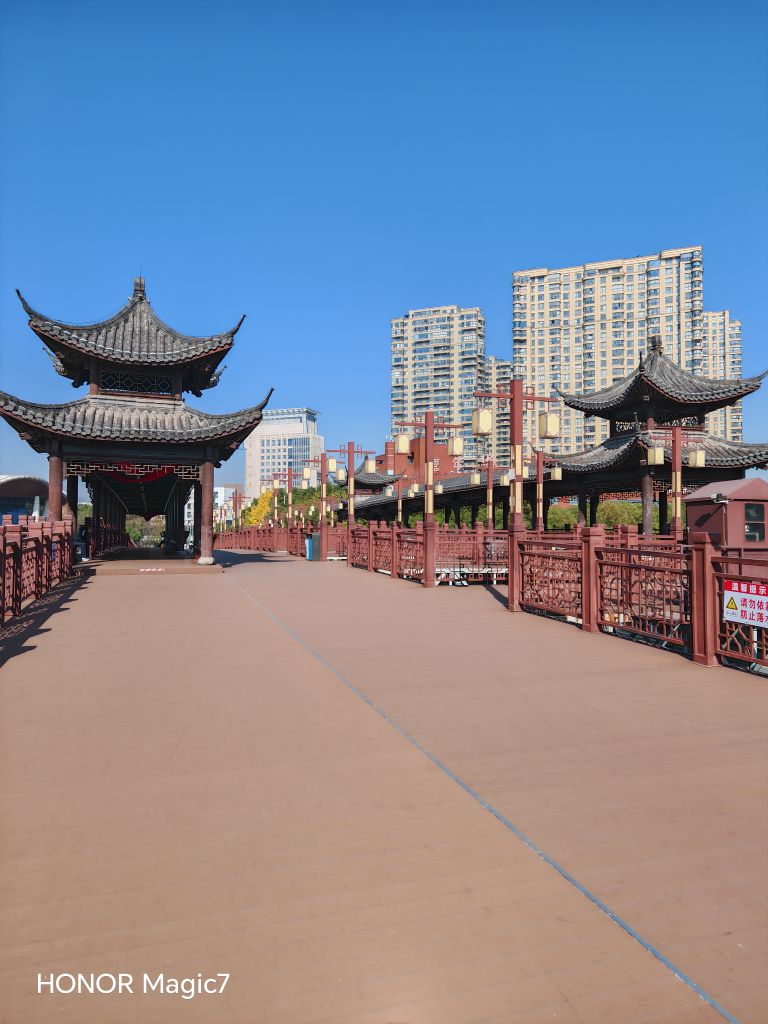 前几日,闲来无事我骑着小电驴去城北大桥,探访项王公园。这座桥已立在苕溪之上约二三十年,昔日窄窄的水泥桥早换了模样,化作一座钢结构大桥,仅两座桥墩便撑起整座桥身,桥左右二边是长长的廊亭,供游人休息,项王公园,那座仿古城楼巍峨矗立,飞檐翘角在冬阳下泛着沉稳的光。