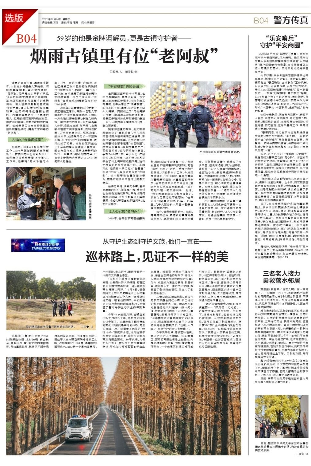 同里古镇的“老阿叔”:调解2600余起纠纷的金牌民警 清晨的同里古镇,薄雾氤氲,小桥流水旁人声渐起。河畔早餐摊前,59岁的岳伟忠提着笔记本电脑,正和店家聊着前几日化解的桌椅纠纷。熟悉他的人递上热豆浆,邻里拽着他念叨家长里短,他都笑呵呵地耐心回应。在晨练老人、忙碌店家与早到游客之间,这个身影格外亲切——他是吴江公安分局同里派出所民警岳伟忠,更是古镇人心中的“老阿叔”。 自1984年参加公安工作,2010年调任同里派出所副所长,岳伟忠已在古镇纠纷调解一线坚守15载。秉持“群众矛盾无小事”的理念,他深耕新时代“枫桥经验”,创新“一早二多”工作法,累计成功调解各类纠纷2600余起,成了名副其实的“金牌调解员”。 2018年,北联村一起工程施工意外致老人身亡,死者家属情绪激动,工程队也拒不认责,矛盾一触即发。岳伟忠当机立断将双方分开,化身“传声筒”穿梭其间,既传递歉意,又剖析利害。36天里,他像跑马拉松般反复劝解,最终促成双方握手言和。“调解没有捷径,把小矛盾当大事办,才对得起群众信任。”这是他常挂在嘴边的话。 深耕基层的岳伟忠,不仅是经验丰富的调解员,更是创新社会治理的领头人。针对景区矛盾多发的痛点,他牵头组建“娘舅联盟”,联动社区干部、律师、旅游公司形成调解合力;挂牌成立“阿叔调解工作室”,将矛盾化解延伸至“最后一米”。随着游客量攀升,他又推动成立“掌柜联盟”,串联数百户民宿商户互通信息;发动民警与志愿者组建“侠客联盟”,高效处置突发事件。节假日里,他手机24小时开机,线上线下连轴转,把游客的事当成自家事,“岳警官”“老岳”到“老阿叔”的称呼转变,藏着群众满满的信任。 2019年,卸下副所长职务的岳伟忠,依旧扎根调解一线。“‘岳所’变‘老岳’,工作劲头不能减。”那年暮鼓晨钟活动夜,他忙到深夜12点,仍一丝不苟处理着一起旅游纠纷。15年来,他的大年三十多半在值班室度过,错过了无数次家庭团圆。 如今,即将退休的岳伟忠坦言,离岗后最想做的就是陪伴家人,再带他们逛逛熟悉的古镇。回望从警生涯,他毫无遗憾:“做一名让百姓信得过的调解员,守护古镇安宁,是我这辈子最骄傲的事。”同事眼中,他是“人熟、地熟、事熟”的标杆;群众心里,他是公平公正的“定心丸”。即便即将卸下警徽,他仍笑着说要“退而不休”,继续为古镇平安添砖加瓦。 烟雨江南,石桥巷陌。同里人或许记不清每一次调解的细节,但一定记得那个笑意温和、耐心倾听的“老阿叔”。他留给古镇的,不只是奔波的背影,更是一份沉甸甸的安宁。