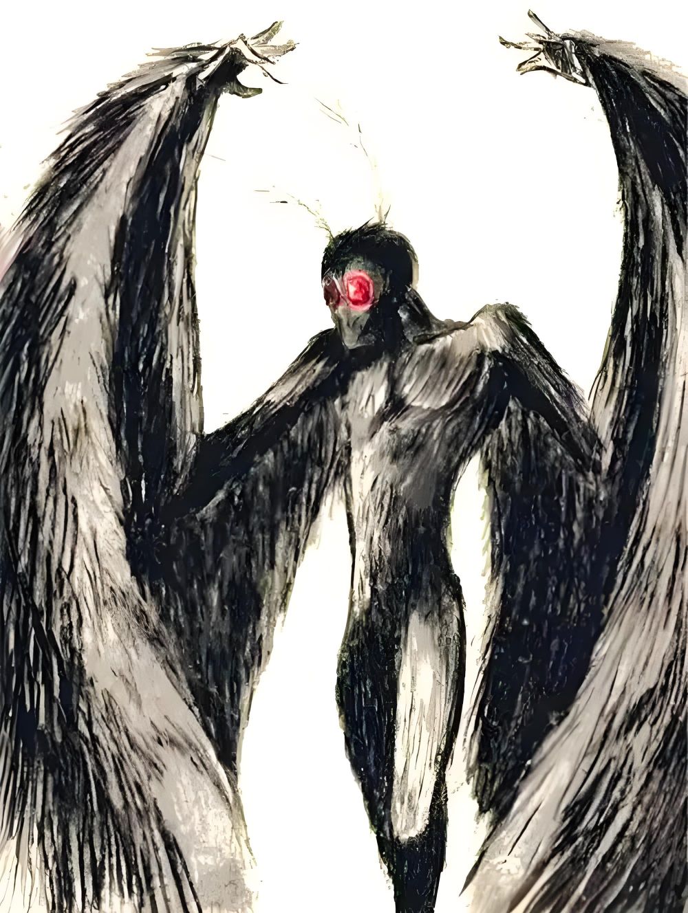 1966年11月12日于美国西弗吉尼亚州邻近克伦德宁(Clendenin)的当地公墓中,五名男人正于公墓中进行埋葬工作途中,他们看见一个褐色的人形物体从附近一棵树上出现,于他们的头上飞越过。五名男人感到很困惑,因为所出现的并非一只鸟,而是一头外形类似人,但有一双翅膀的不明生物。在这次事件的数日后,有更多的类似目击再度发生。