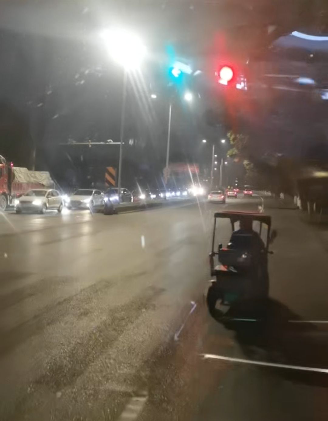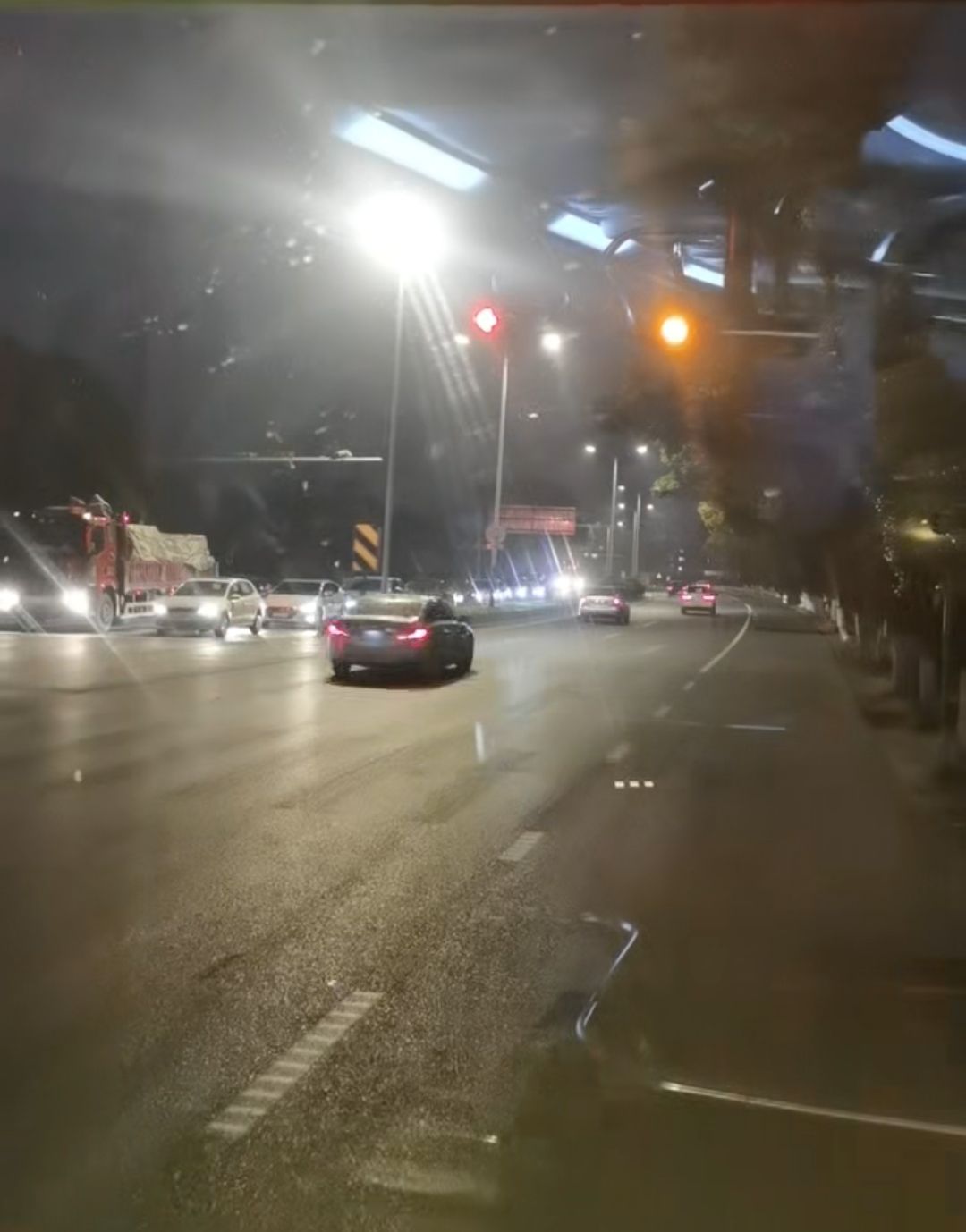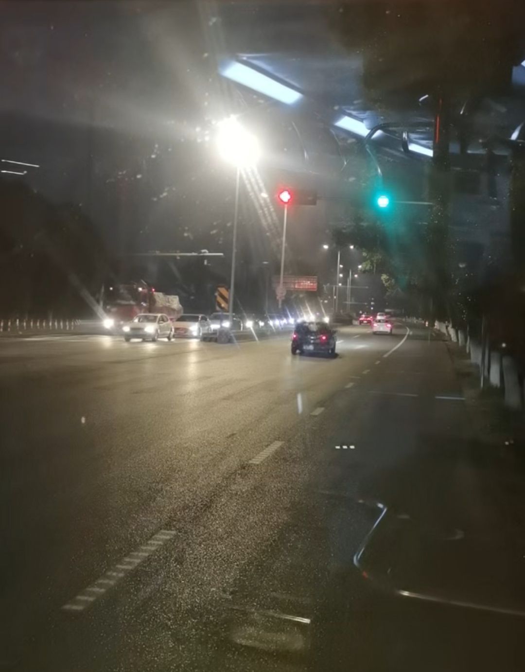 沿G524由南向北方向行驶至与环湖路交叉路口,当绿灯正常亮起快要转换成黄灯的时候,此时的绿灯没有倒计时读秒数字显示,只是由绿灯连闪3下后直接转换成黄灯了。