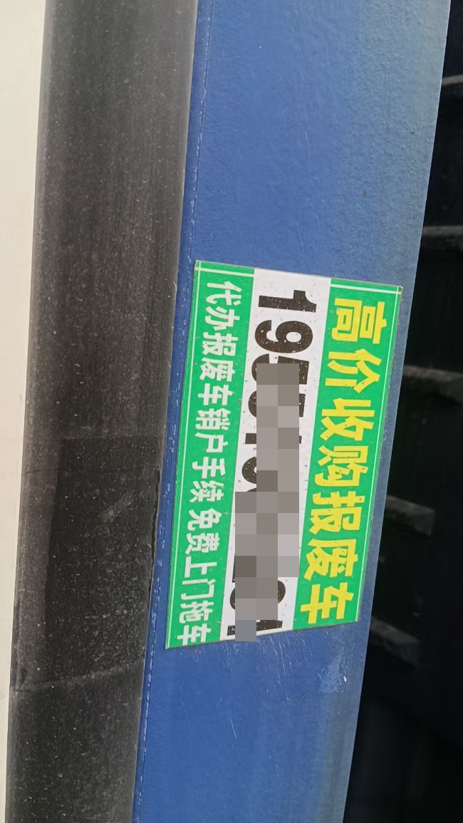 江苏省苏州市吴江区园区路1988号附近,只要车一停过夜,就被贴上广告和记号笔写上号码。市容市貌这样子管理嘛,这样的话那做生意的都做点贴纸到处树上房子上贴呗。城管应该赶紧巡逻拍照上传,上报运营商部门做停机处理。