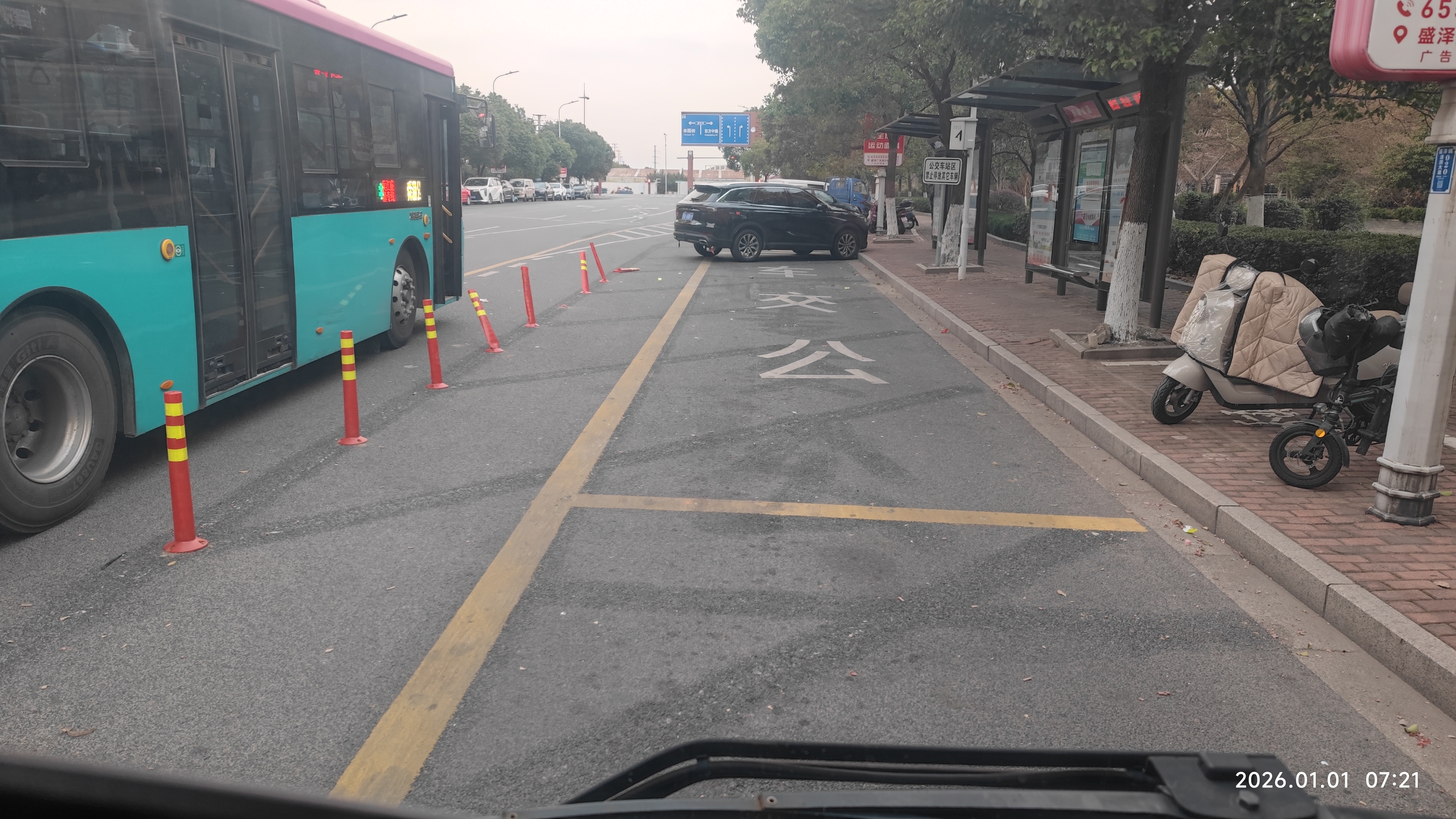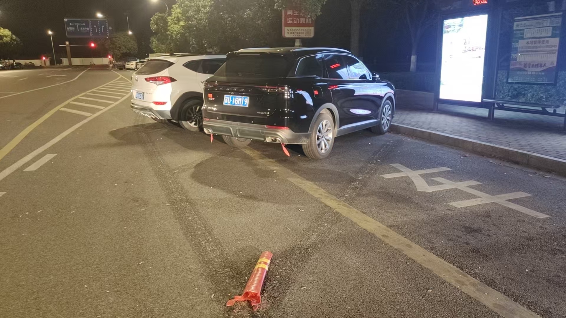在盛泽镇舜湖公园公交首末站,这台车刚好堵在了公交站台通道的出口,公交站台区域安装了隔离警示桩都挡不住他的违停。这个车把我们的出口堵得死死的,我都不知道他们停车怎么都不长眼不为别人着想。