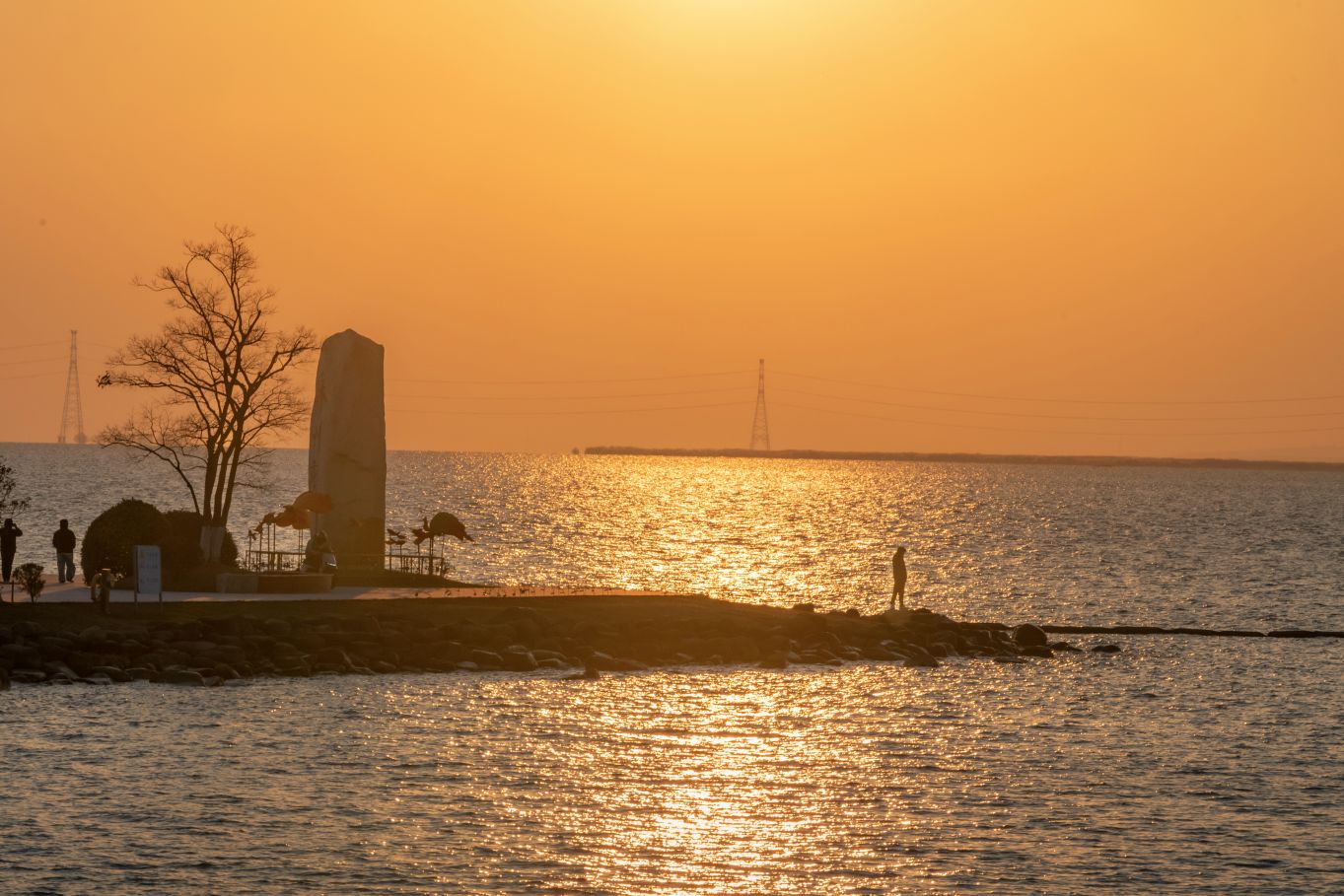 太湖白雪 发表于 2026-1-3 20:47 西边的太阳就要落下了,东太湖上静悄悄。芦花摇呀摇,湖上泛金光