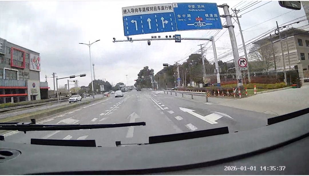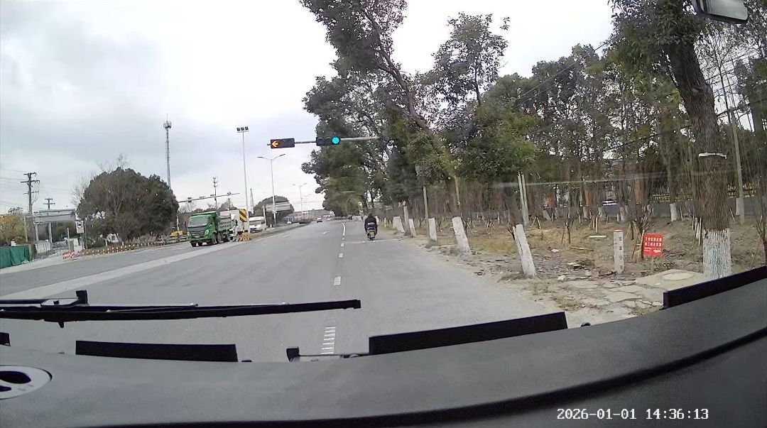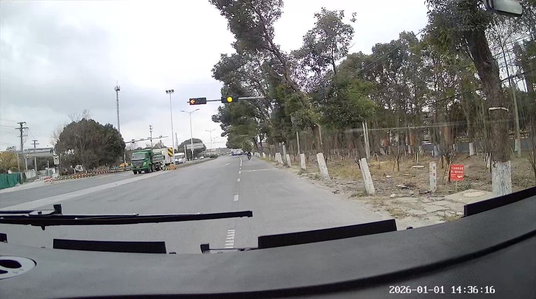 沿G524由南向北方向行驶至与环湖路交叉路口,当绿灯正常亮起快要转换成黄灯的时候,此时的绿灯没有倒计时读秒数字显示,只是由绿灯连闪3下后直接转换成黄灯了。