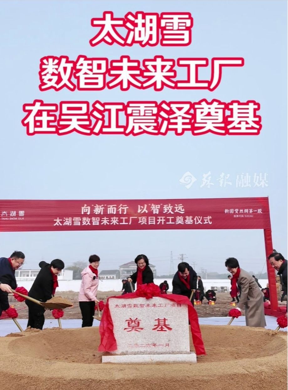 2026-01-06 14:21 苏报记者王英、董晓晓合稿讯:苏州丝绸产业迎来从“制造”向“智造”跃迁的关键节点,一座“生产与自然共生”的花园式人文工厂在吴江震泽镇破土动工。今天(1月6日),总投资约3亿元、占地43.2亩的太湖雪数智未来工厂项目在吴江震泽镇奠基。此举标志着作为北交所“新国货丝绸第一股”的太湖雪,在全球化与智能化战略上又迈出重要一步,为苏州丝绸产业转型升级提供了全新范本。市委常委、宣传部部长金洁出席活动。