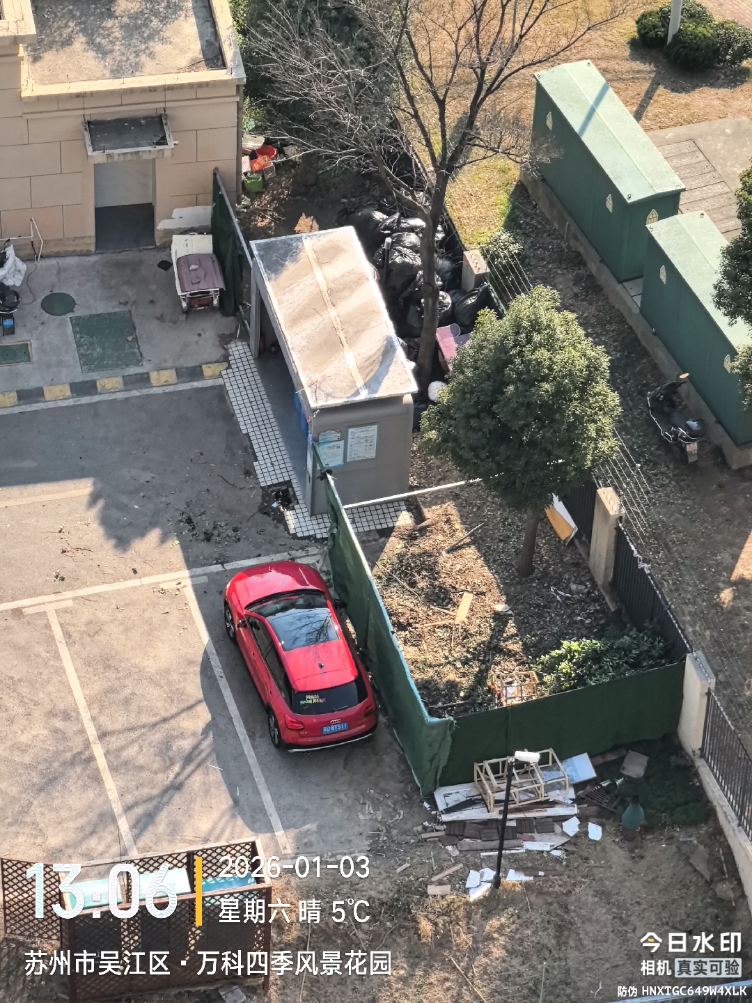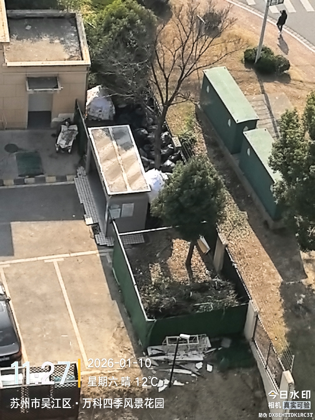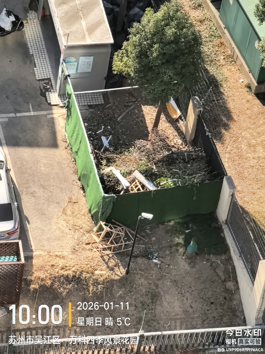 万科四季风景花园物业在小区西南角私自违建拉围挡,在绿化露天堆放垃圾,多次反馈未整改,希望能强制拆除违建,加强垃圾规范管理