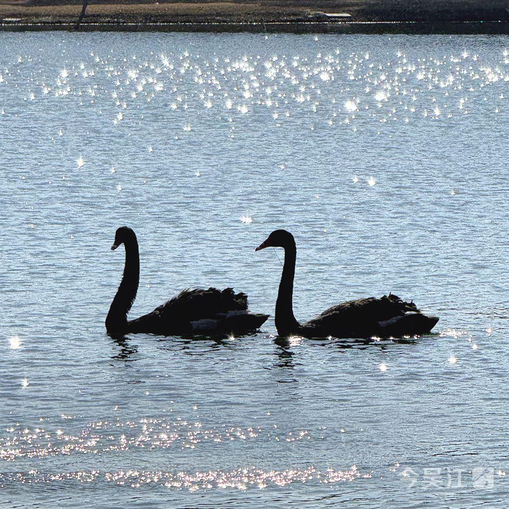 这两只黑天鹅分别叫‘七七’和‘都都’,大约3岁,属于成年个体,目前还处于环境适应期。若适应顺利,这对黑天鹅有望在明年开春诞下天鹅宝宝,为这片水域注入新的生机。