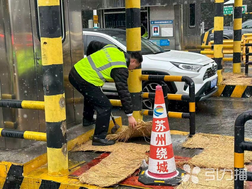20日凌晨,苏州绕城高速各收费站率先行动。在负责人带领下,全体管理人员奔赴一线,协同应战。收费站人员分工明确、动作迅捷:一组迅速在收费车道、广场等关键区域铺设防滑草垫;另一组主动为车牌被积雪覆盖的车辆进行清理,确保识别顺畅,提升通行效率。司乘人员摇窗致谢的画面,为寒日增添了融融暖意。各收费站同步在车流密集区域全力清雪除冰。