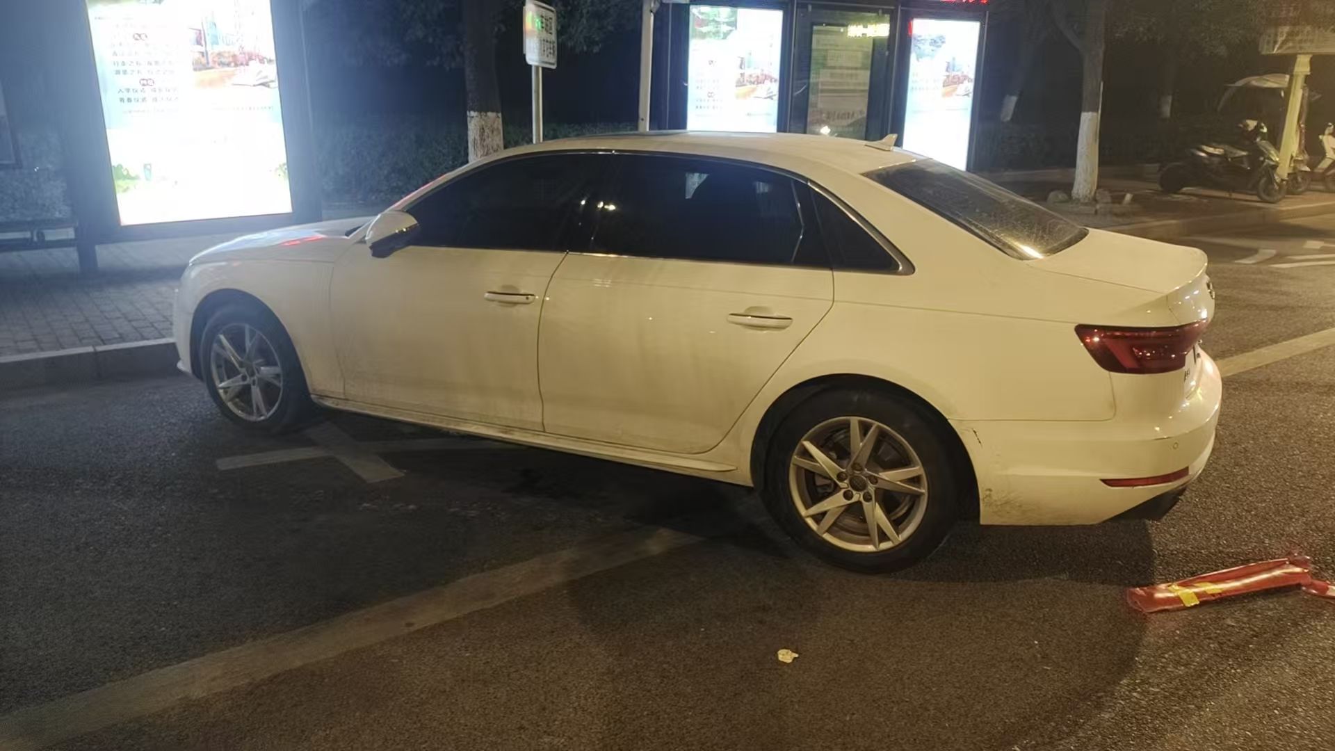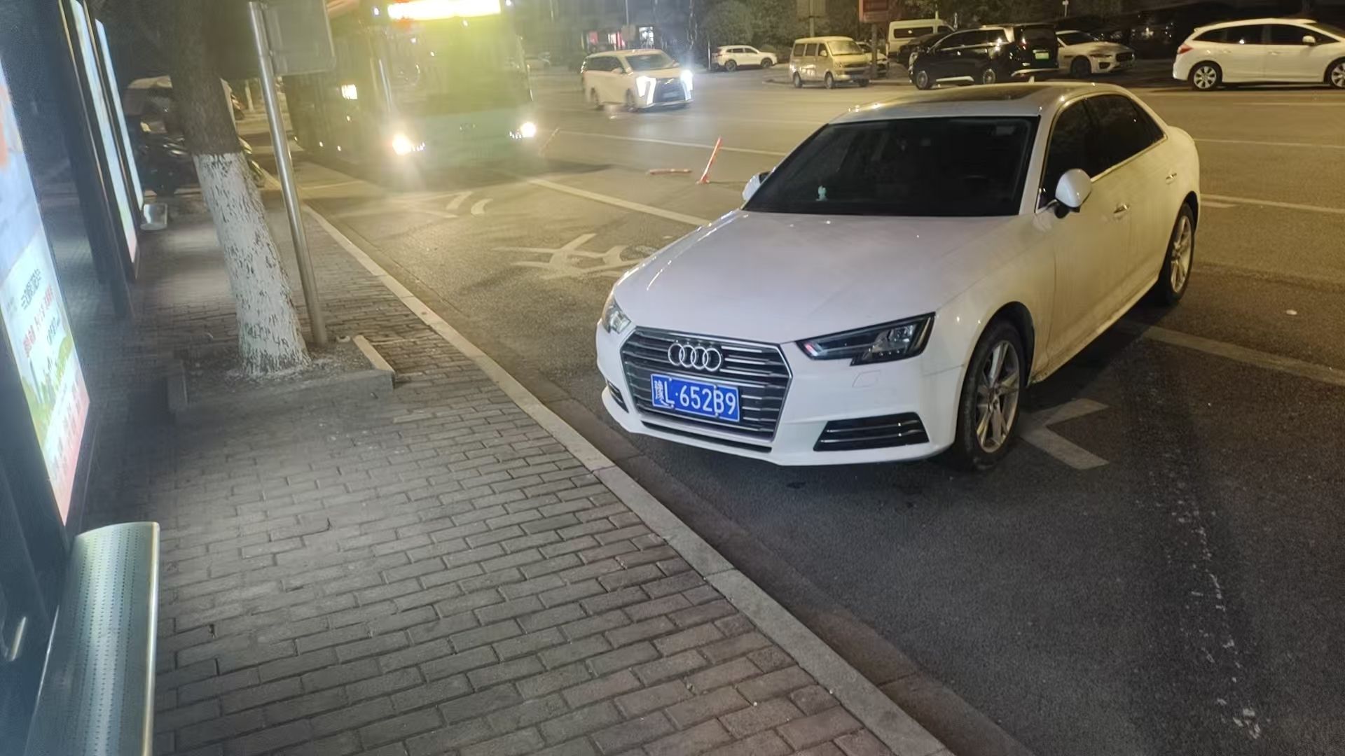 在盛泽镇舜湖公园公交首末站,这台车刚好堵在了公交站台通道的出口,公交站台区域安装了隔离警示桩都挡不住他的违停。