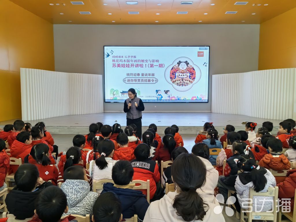 苏报记者陶冠群苏报道讯:1月23日上午,“苏美娃娃开讲啦!”首场活动在苏州工业园区锦溪幼儿园举行。活动围绕“桃符迎春 童说年画”主题展开,并向孩子们发出迷你导赏员招募令。