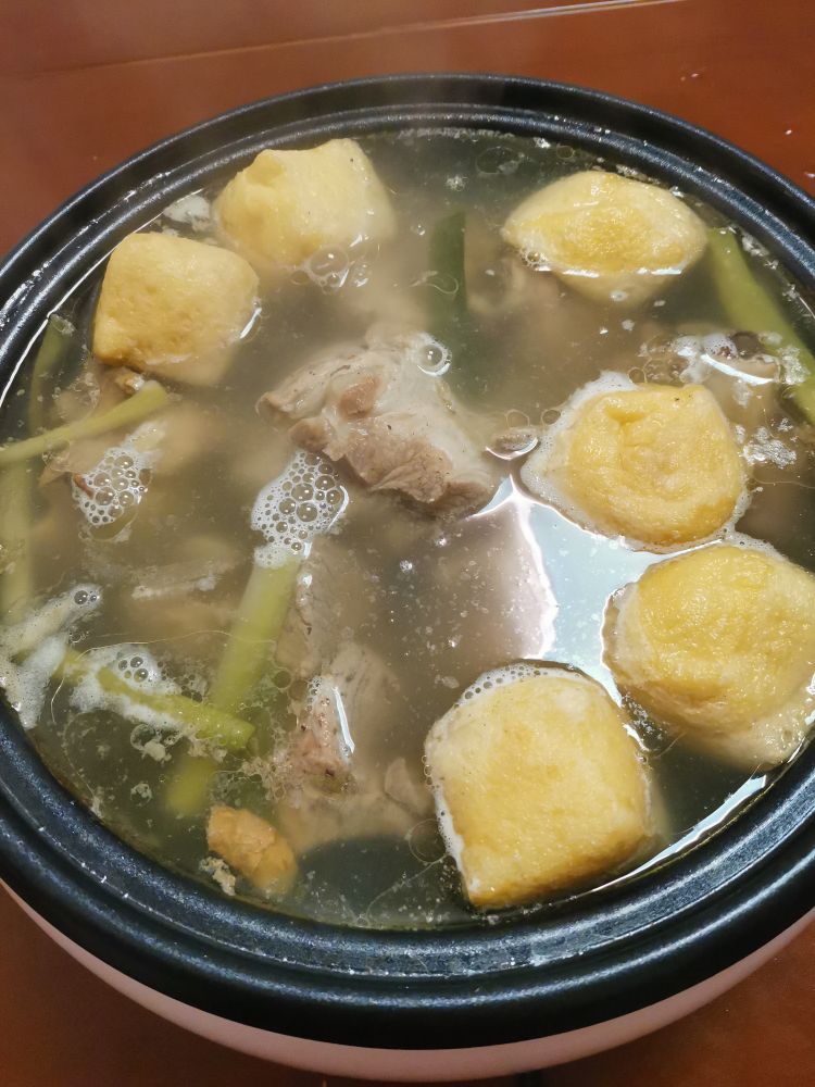 筒子骨打底、百叶、肥牛、油豆腐、金针菇、塌苦菜、野菜、丝粉,边吃边放,简简单单,又是一餐。