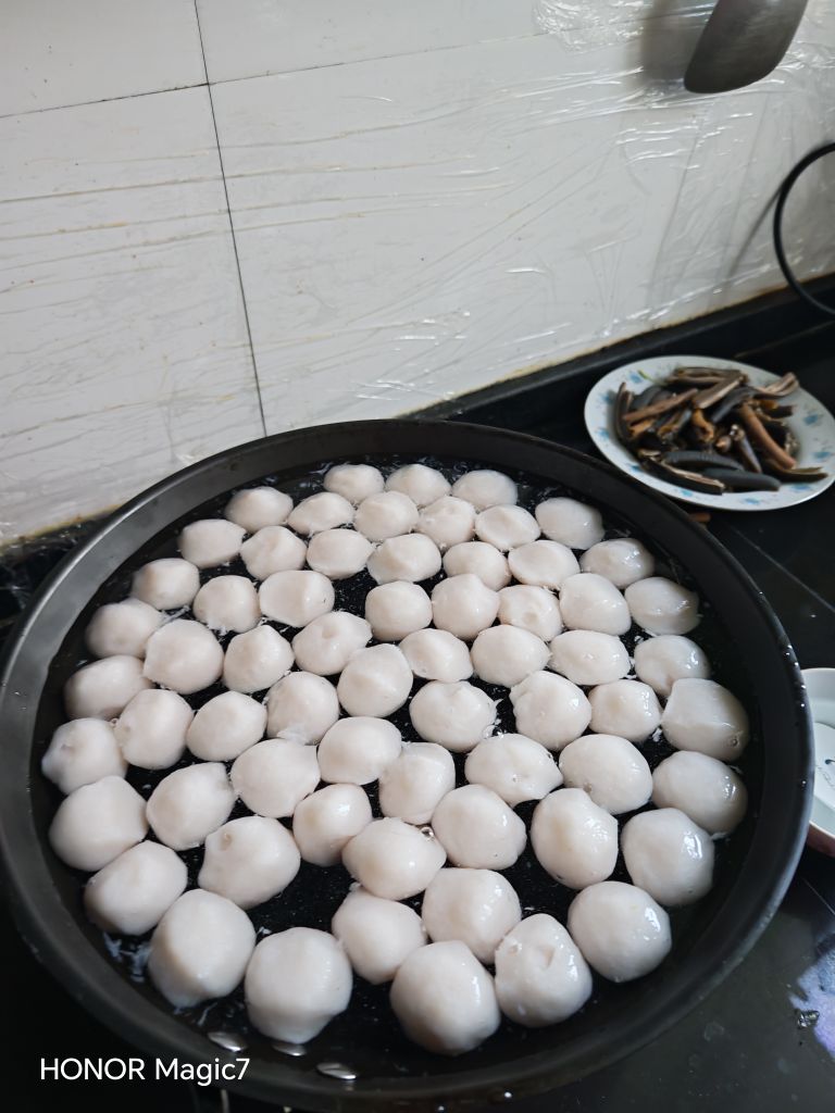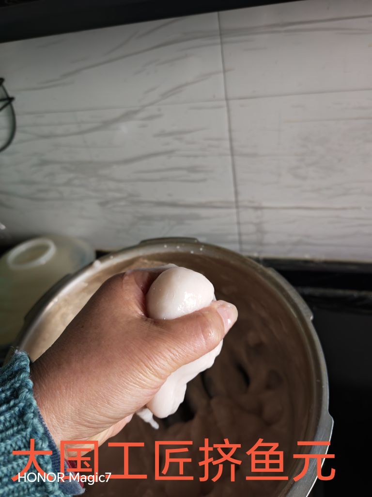 这鱼元挤完了,锅内刮刮手上刮刮,还能刮出三四个鱼元,可不能浪费了。这植入了“龙骨芯片”的鱼元,口感Q弹,滋味上佳。刚才有个调皮的,竟从盆里溜出来,在地砖上蹦跶着“跳迪斯科”,足见那股子韧劲。照这水准,说不准哪天,咱这龙骨芯片鱼元,真能走出国门,闯荡世界呢!