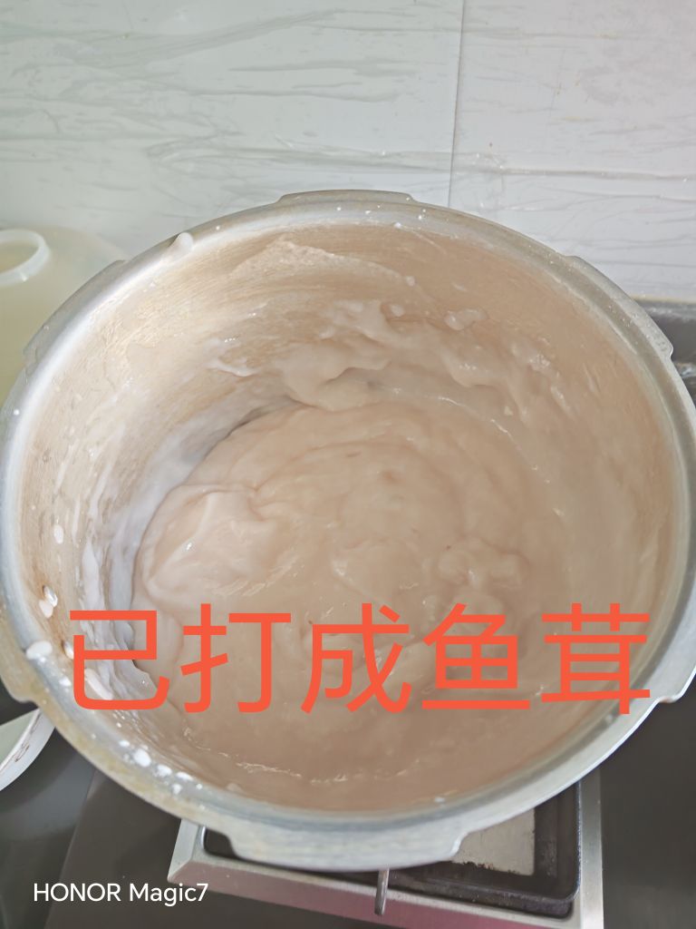 如今做鱼元,早不是当年在砧板上钉住鱼片、拿刀一点点刮肉的笨法子了。先剔掉鱼皮、挖去红肉,把净肉切成小块,扔进变频破壁机,加些清水。机器一转,每分钟两万六千转的高速打磨下,鱼肉瞬间化成极细的鱼茸,变成了破壁鱼茸,连藏在肉里的细刺都碾得无踪无影。