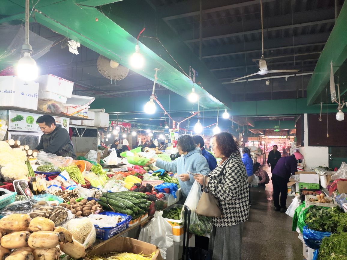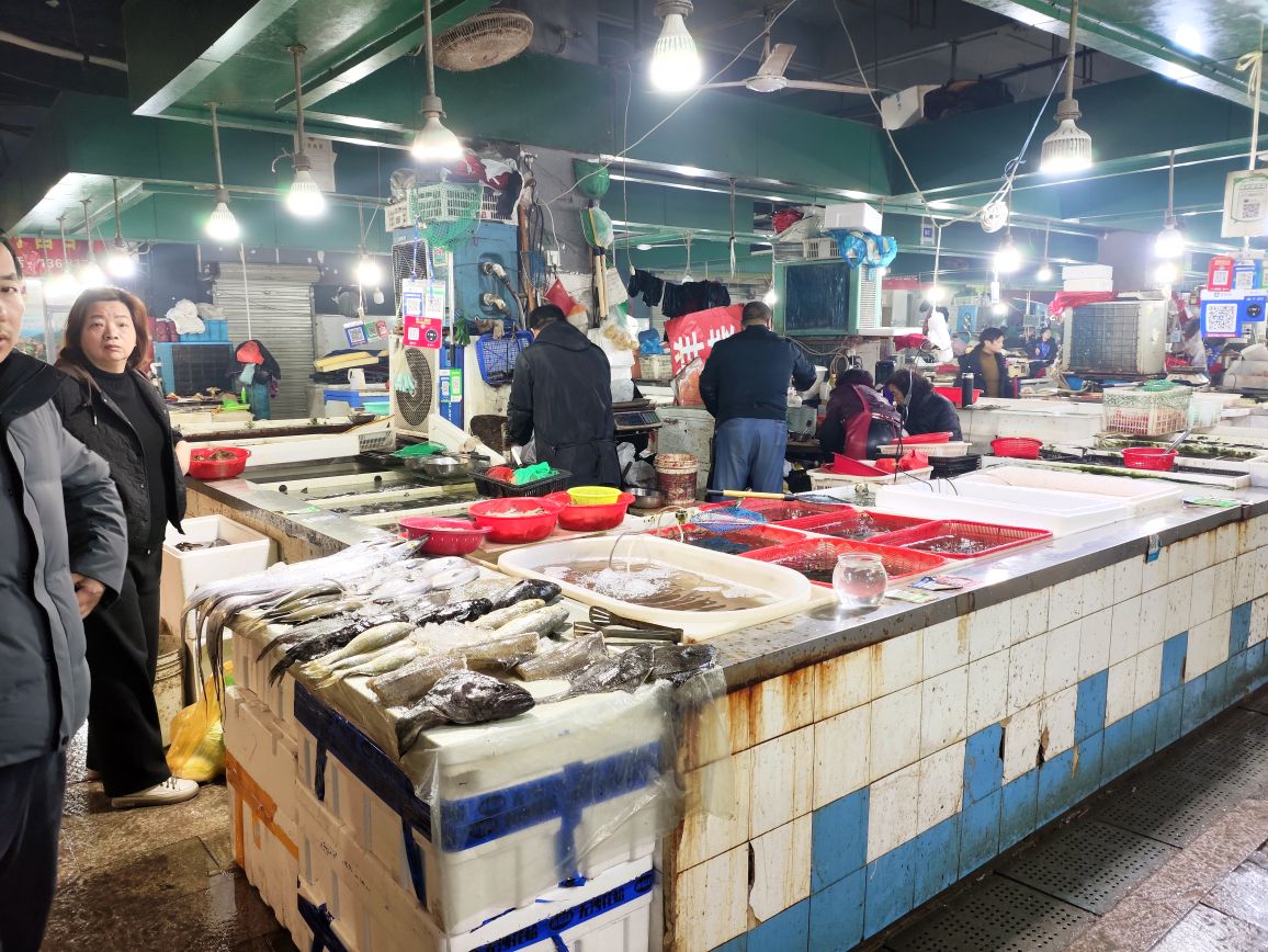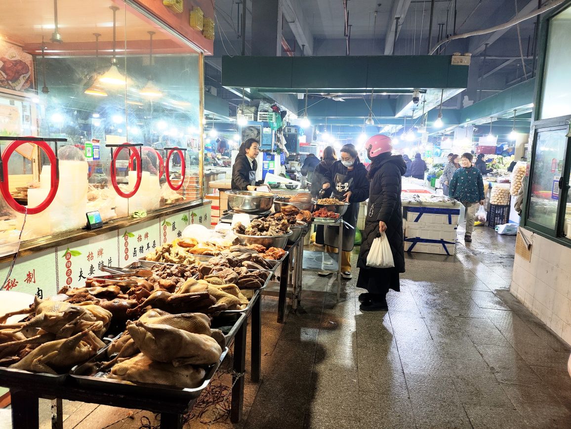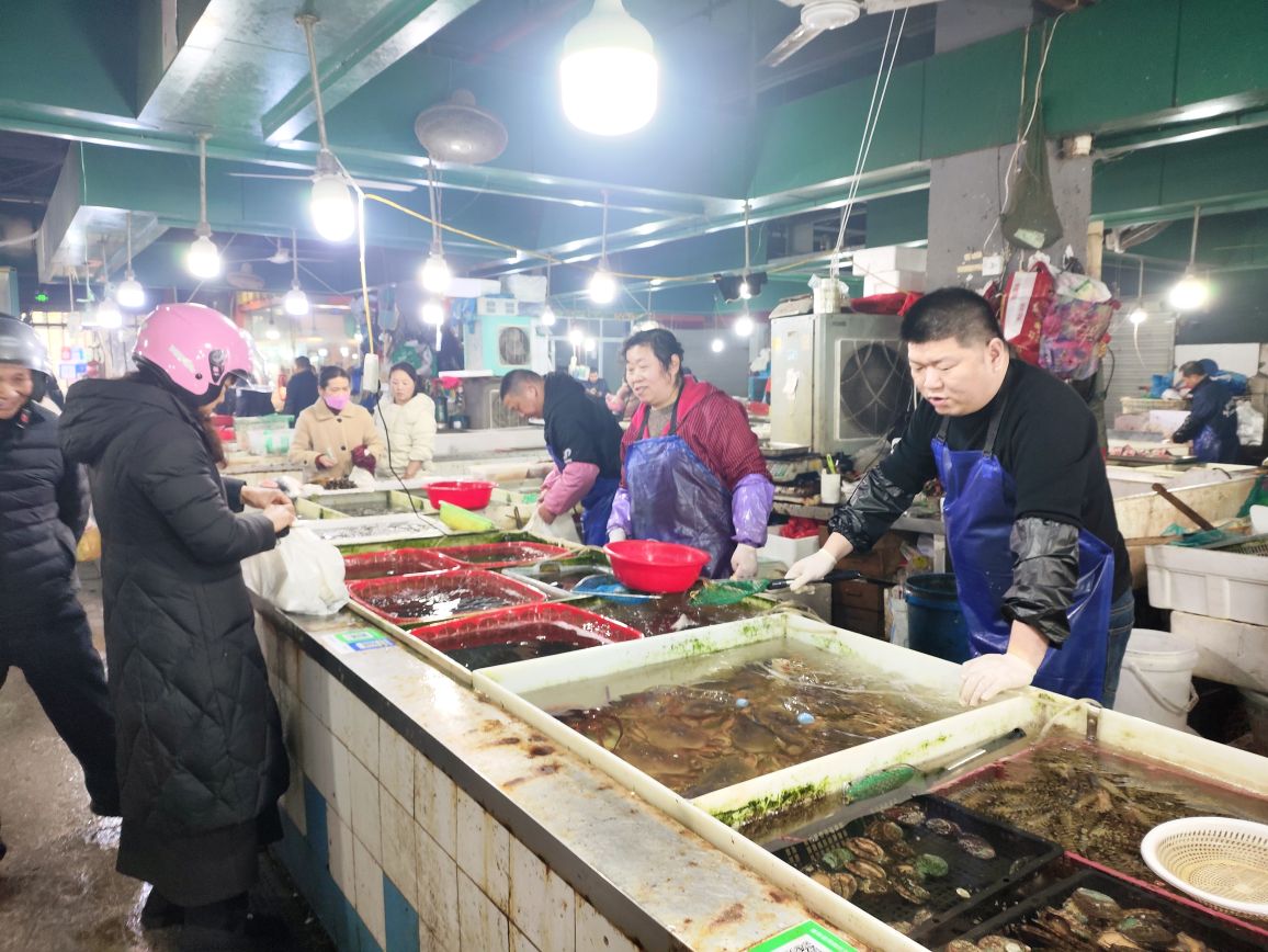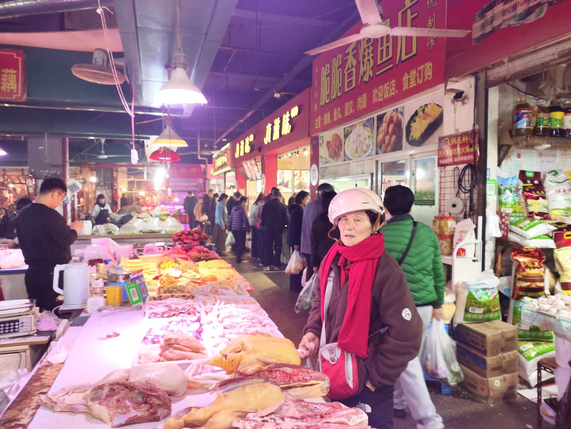 新天地菜场虽然是老菜场,由于管理有方,环境卫生不错,货源充足,近新年一派繁荣景象,欢欢喜喜过大年。