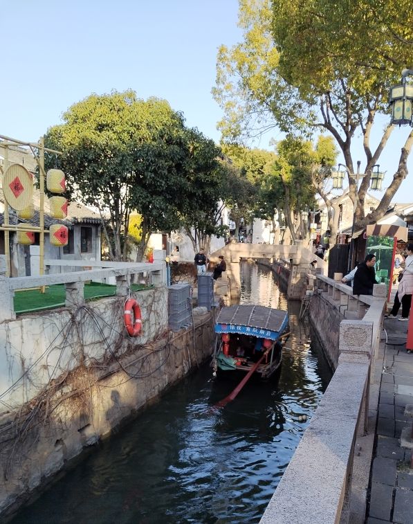 丙午新春游甪直记 丙午新春初四,余八十一载人生,始一至吴县甪直古镇。此地乃教育先贤叶圣陶先生故里,心慕久矣,今始得一拜。 老街狭巷,隔户可相语;市河轻舟,单行方得通。小桥玲珑,如盆景,若衣扣。街头又见吹泡、掼炮,犹是儿时旧物,童趣宛然。 此等古意盎然之水乡,真乃独存一隅、名不虚传也。