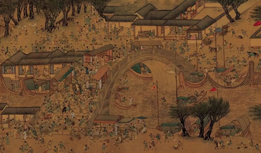 仇英版的《清明上河图》,沿运河从苏州城郊的风景入画,过虹桥,至城门入市区,直至西部城郊,以田园牧歌景象开篇,以一段水上仙台收束,将四百多年前的明代苏州城和江南的风物人情尽呈读者面前。