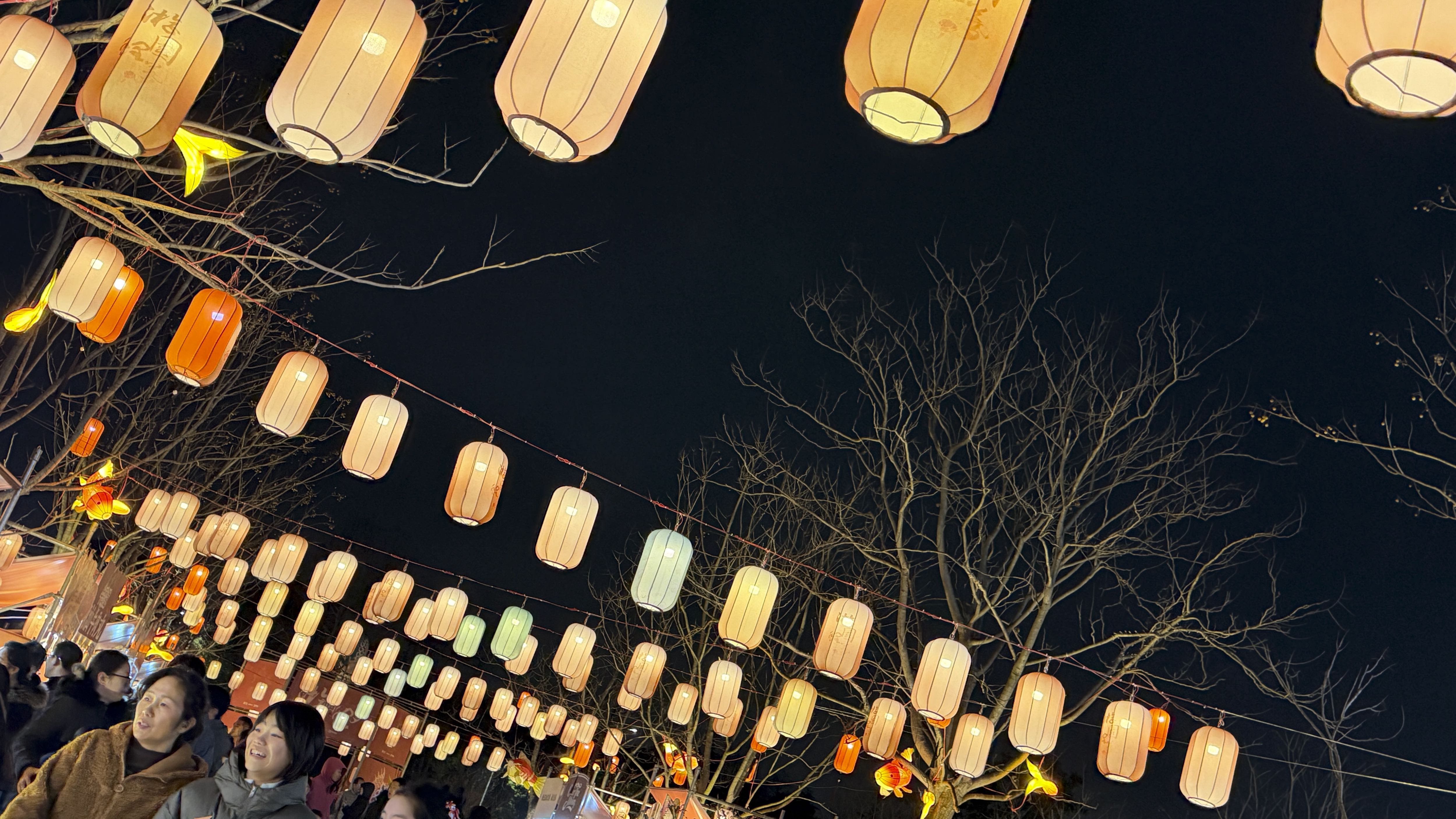 创作说明:对角线灯笼如天幕私语,斜穿黑暗;枯枝为笔,光影为墨,在夜空中写下节庆的诗行。以“枝灯”与“夜语”构建诗意对话,暗合“灯笼诉说团圆”的意象。