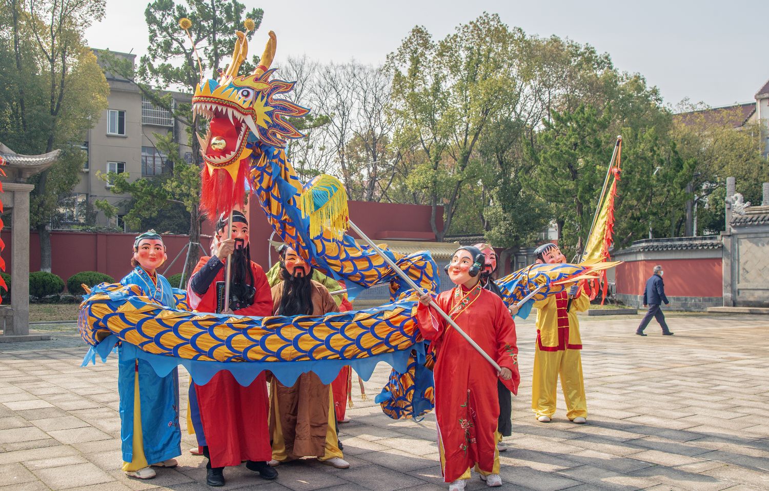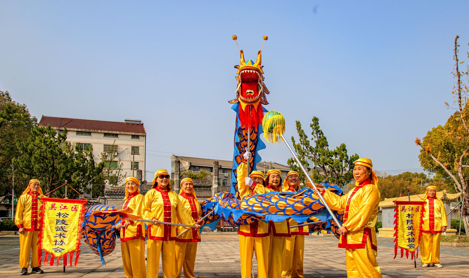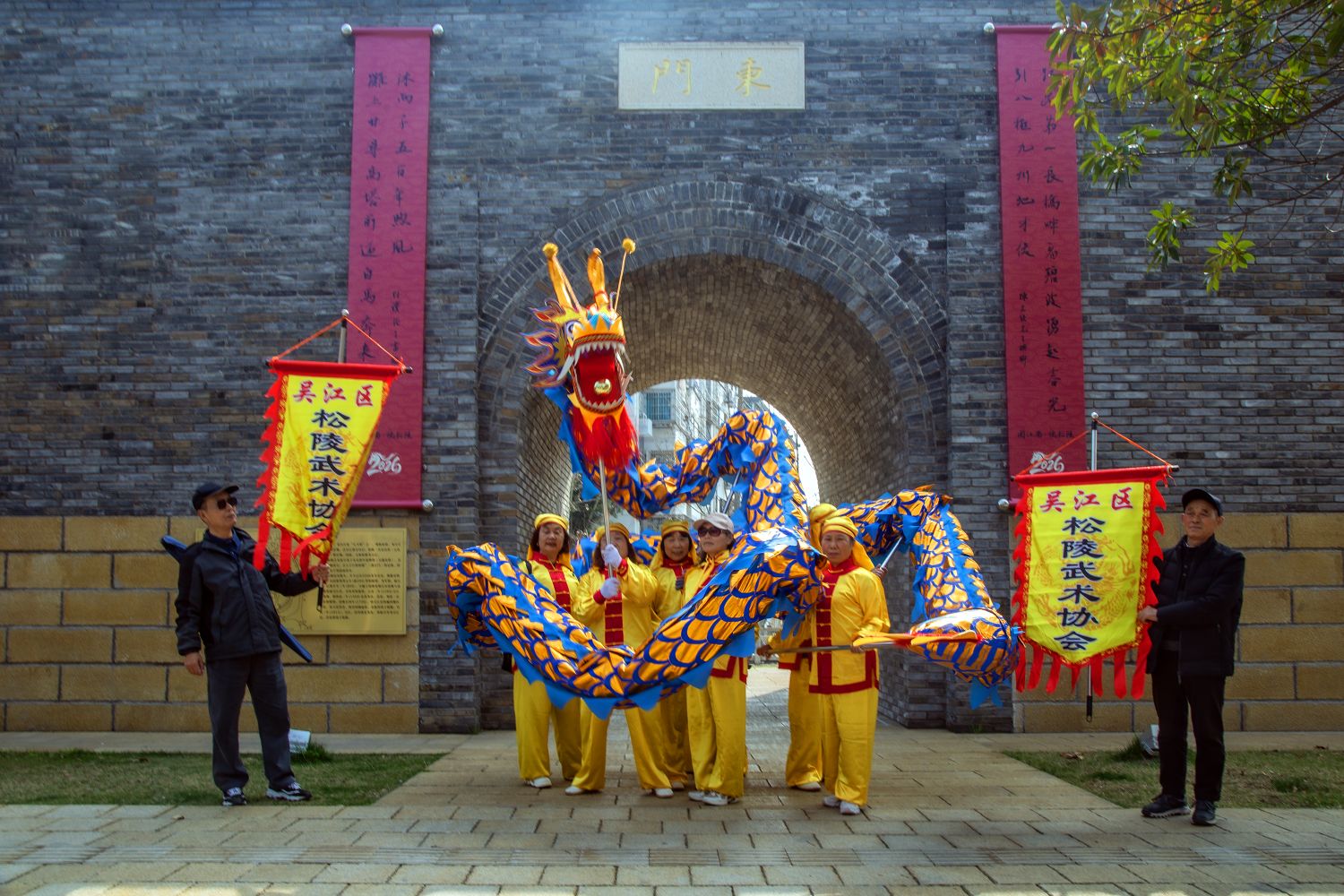 松陵武术协会在东门城墙和吴江文庙展示龙的风采