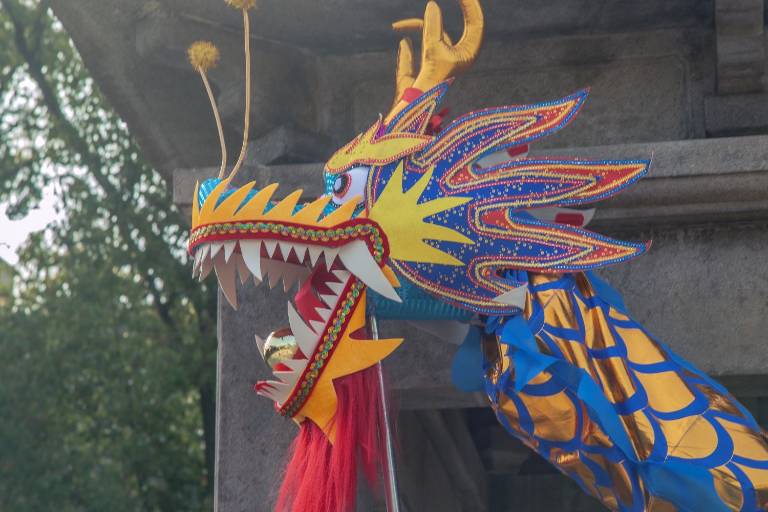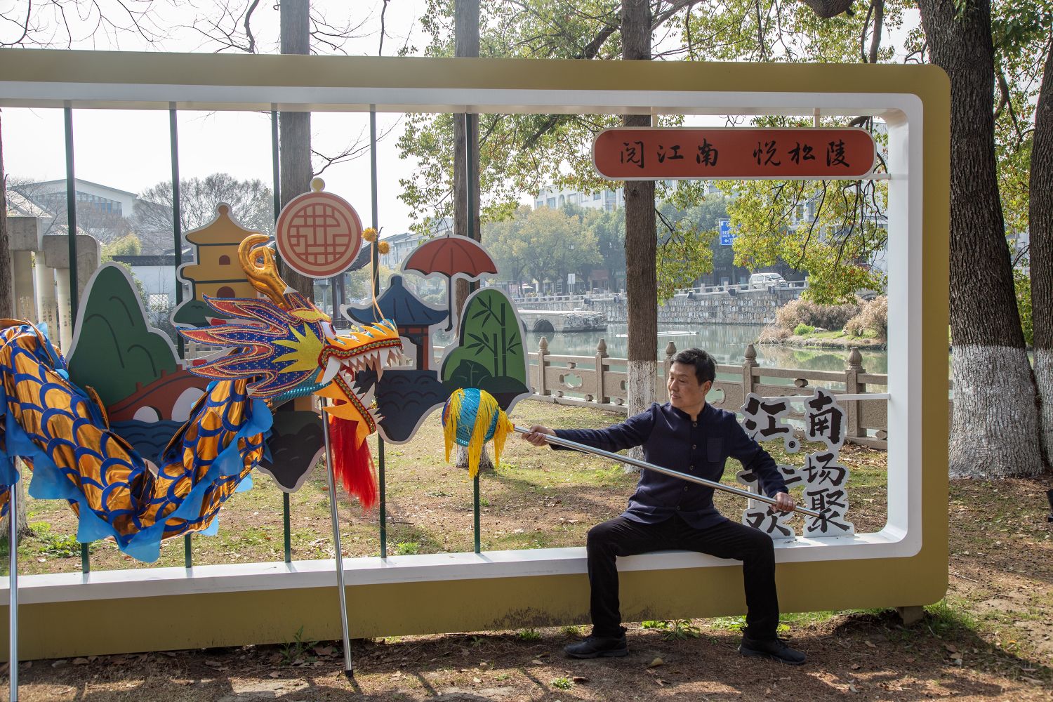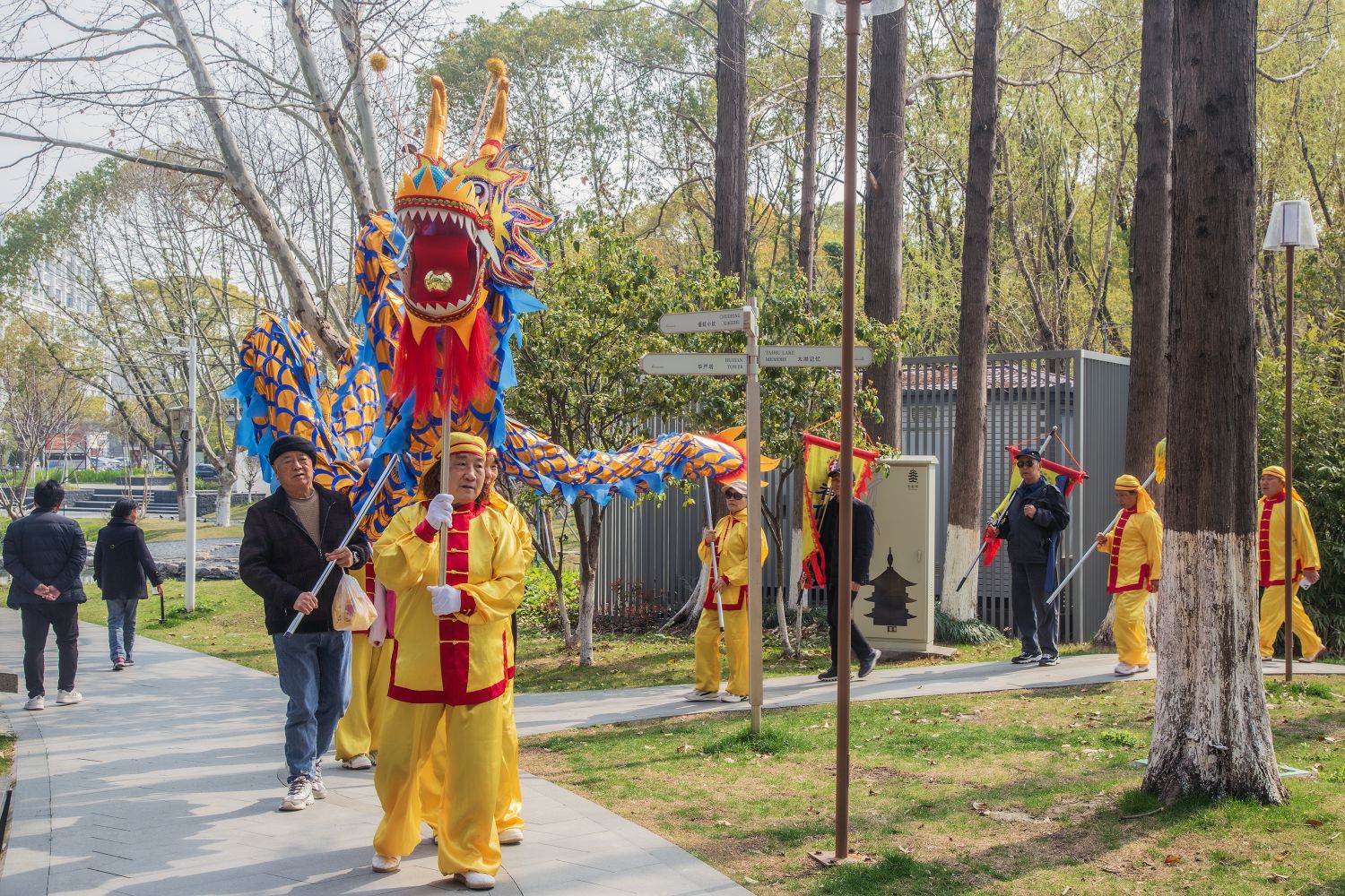 松陵武术协会在东门城墙和吴江文庙展示龙的风采