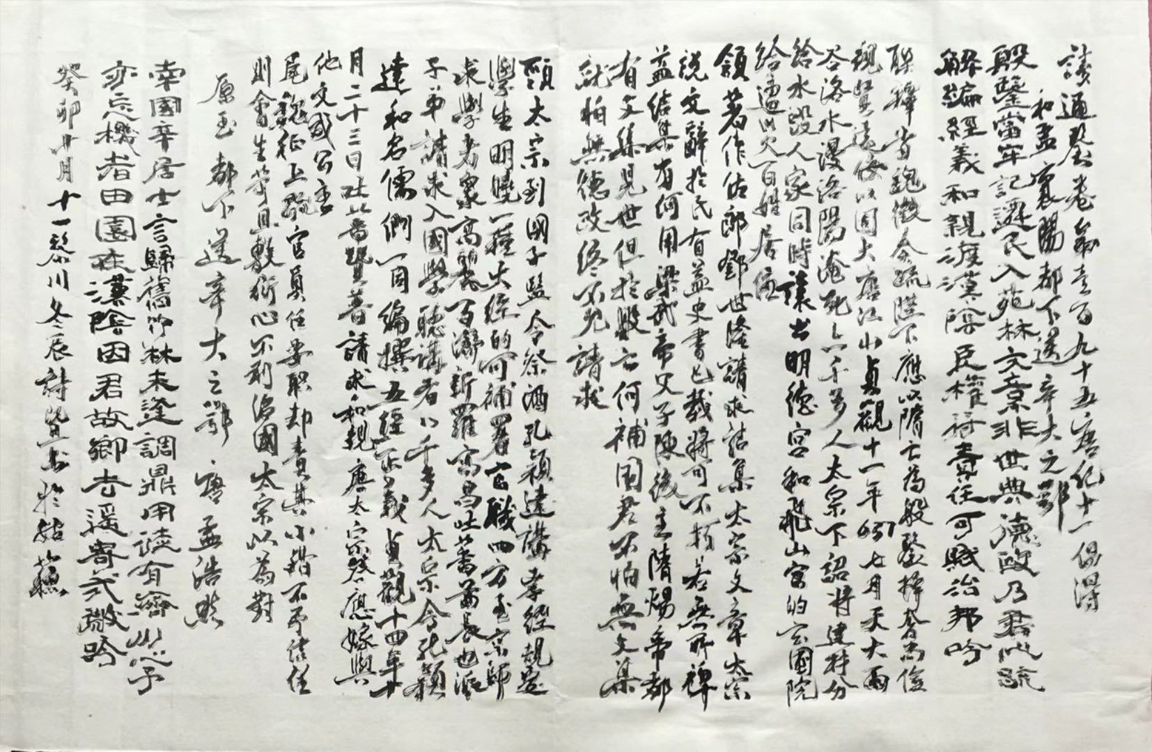 颈:太宗到国子监,令祭酒孔颖达讲说《孝经》,规定学生明晓一种大经以上的,可补署官职。四方学者都来京师,高丽、百济、新罗、高昌、吐蕃酋长也派遣子弟请求入国学,听讲者有八千多人。太宗令孔颖达和名儒们一同编撰《五经正义》。贞观十四年十月二十三日,吐蕃赞普派丞相禄东赞进献黄金五千两和珍奇古玩几百件,请求和亲,唐太宗答应将文成公主嫁给他。